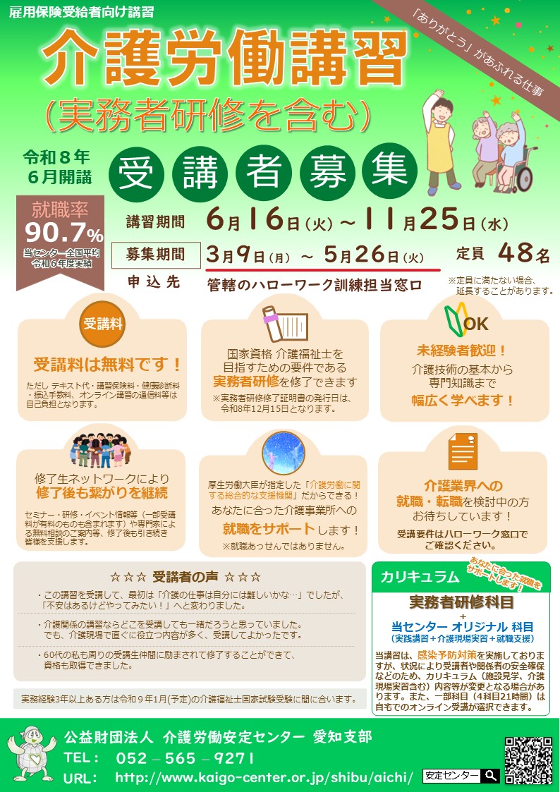 - 令和8年度介護労働講習(実務者研修含む)の受講生募集します。