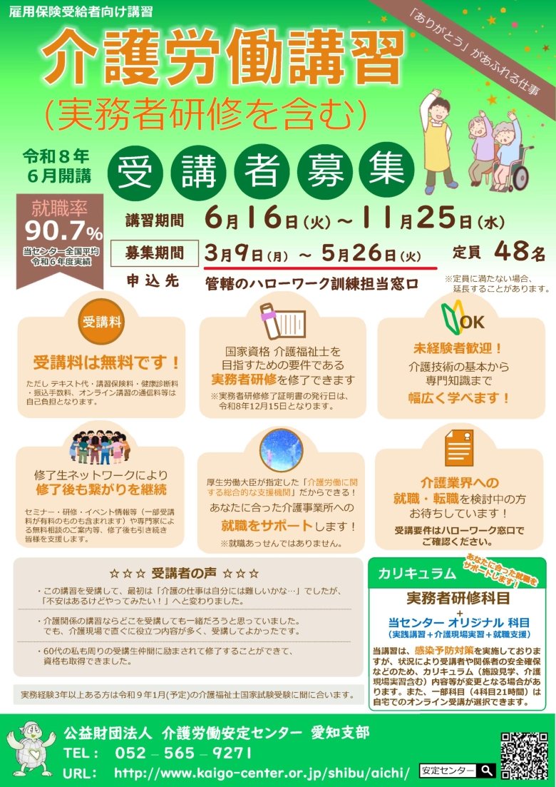令和7年6月17日から11月25日に実施された介護労働講習の講習風景や受講された方の感想、就職先での様子など記載されていますので、ぜひ参考にして下さい。