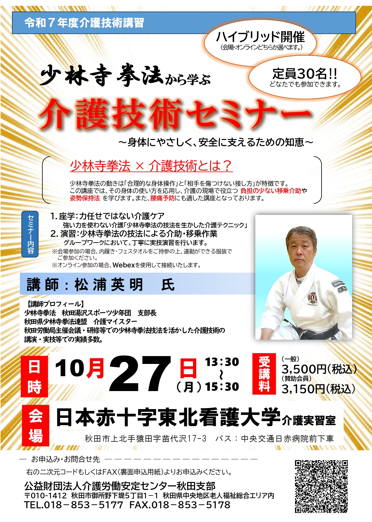 - 【募集中‼】少林寺拳法 介護技術セミナー(ハイブリッド開催)