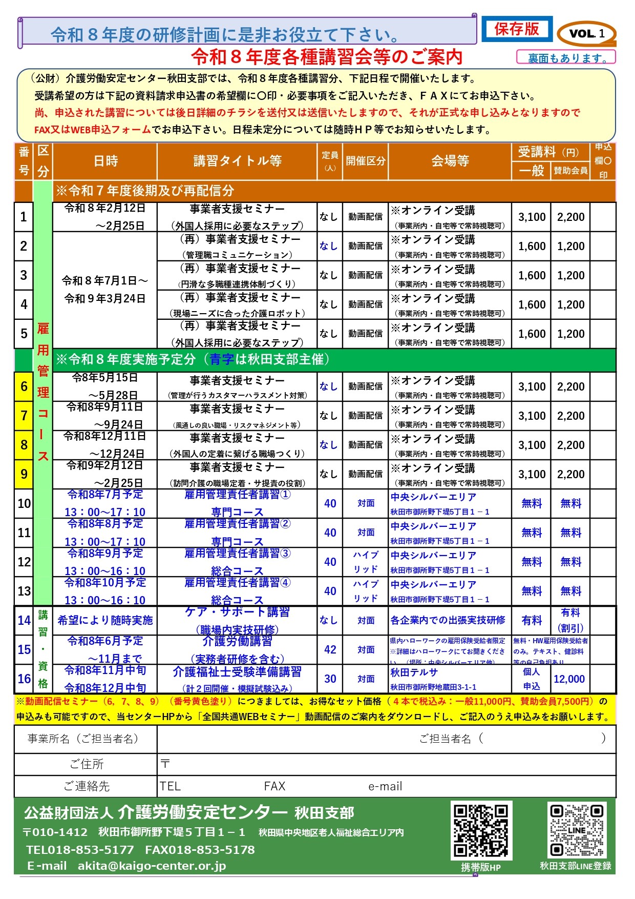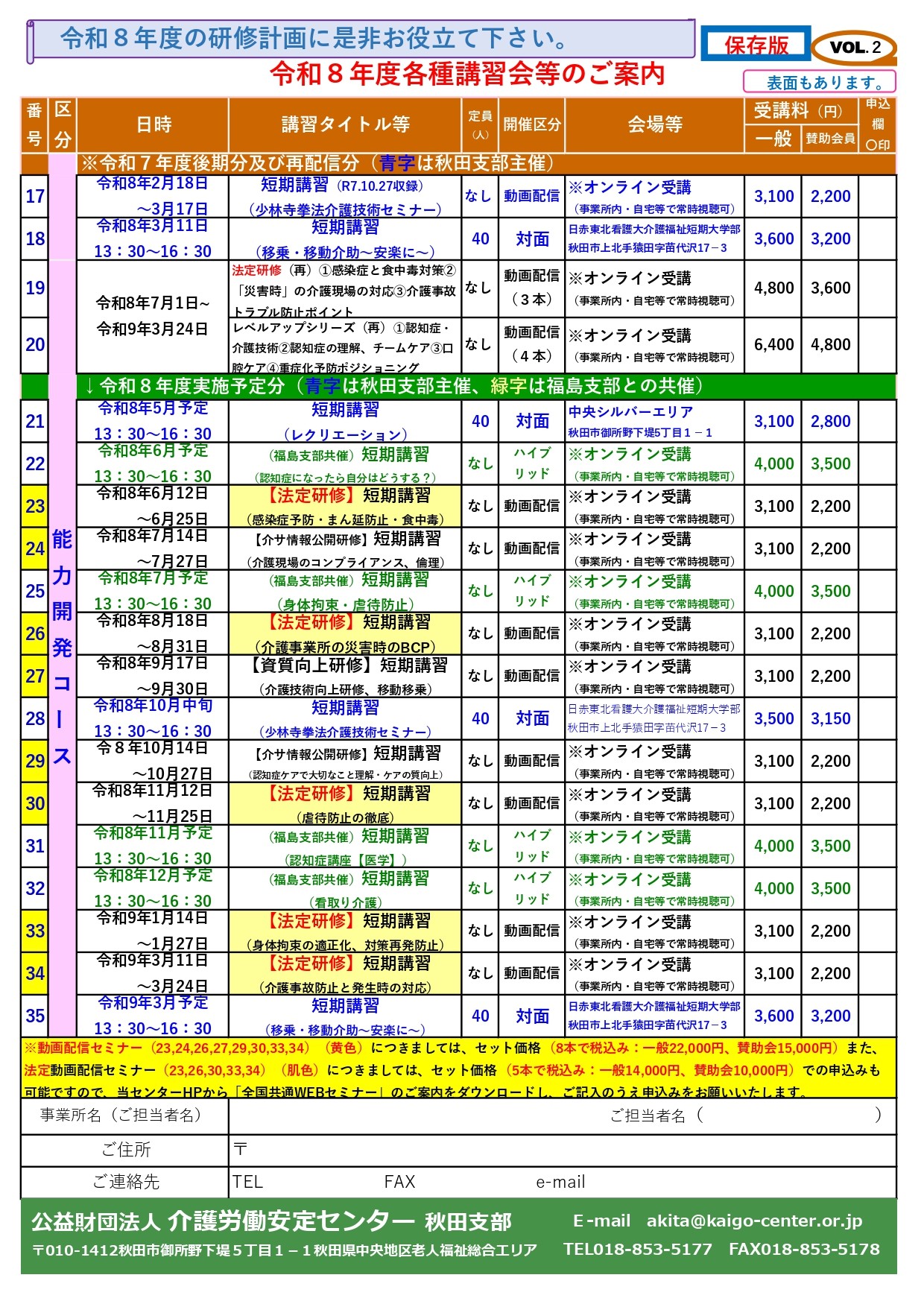 「令和8年度各種講習会」秋田支部の予定を公開しました。