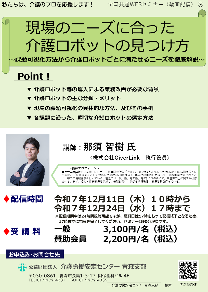 【募集中】動画配信Webセミナー⑨「現場のニーズに合った介護ロボットの見つけ方」(12/11~/12/24配信)のご案内