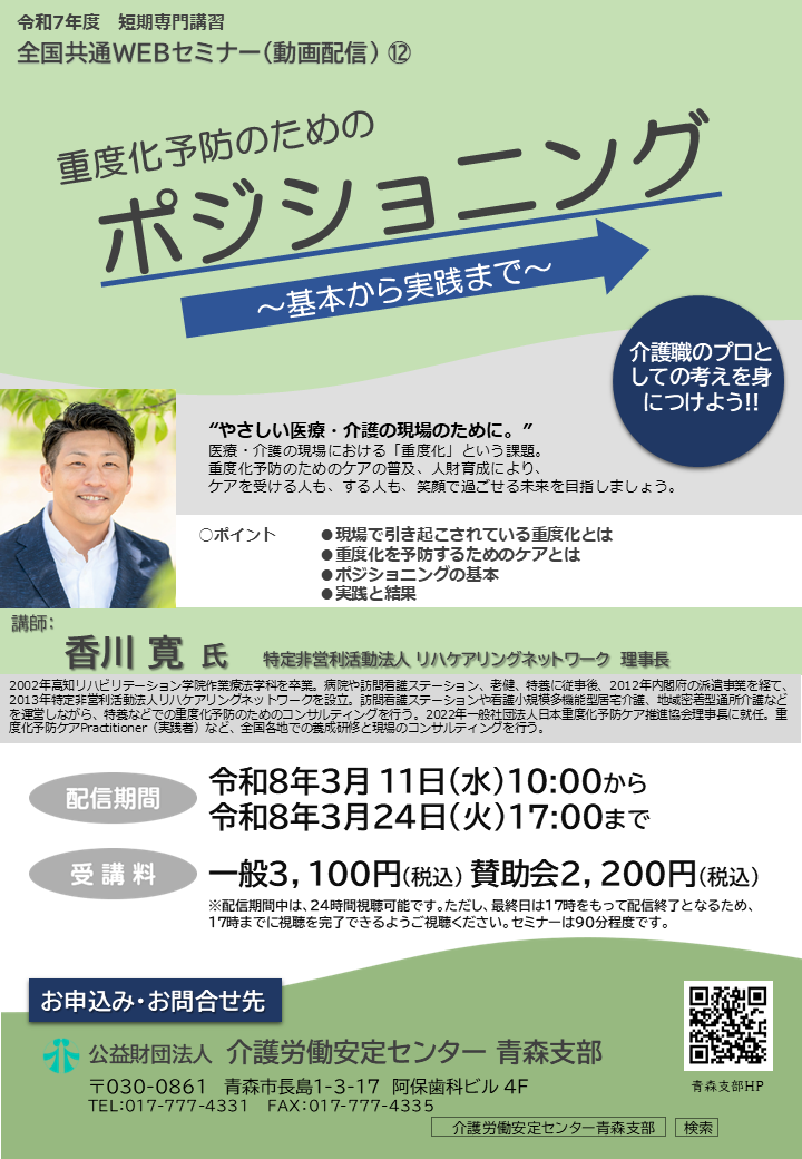 【募集中】動画配信Webセミナー⑫「重度化予防のためのポジショニング」(3/11~/3/24配信)のご案内
