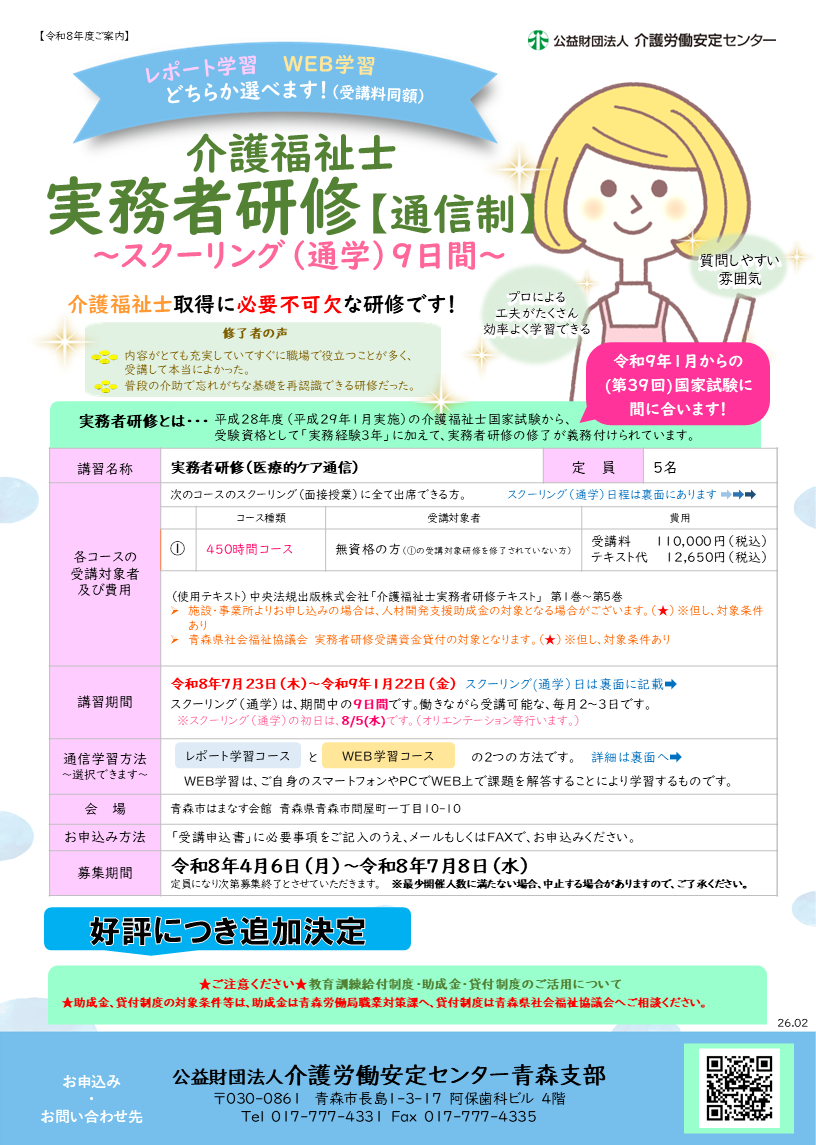 - 実務者研修【通信制450Hコース】の受講生募集中!!