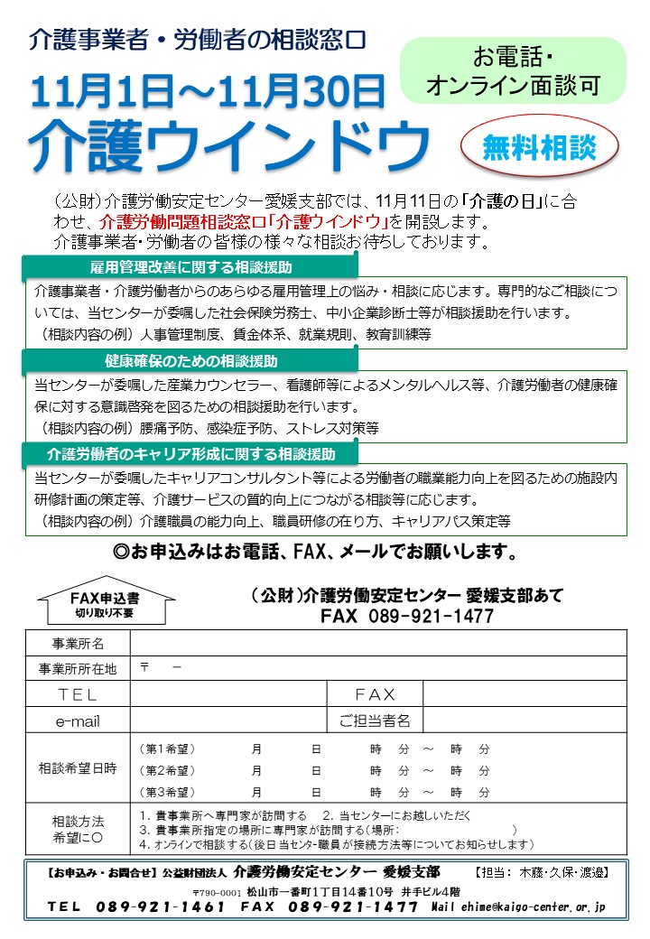 - 令和7年度 介護ウインドウを開設します(11/1~11/30の間)