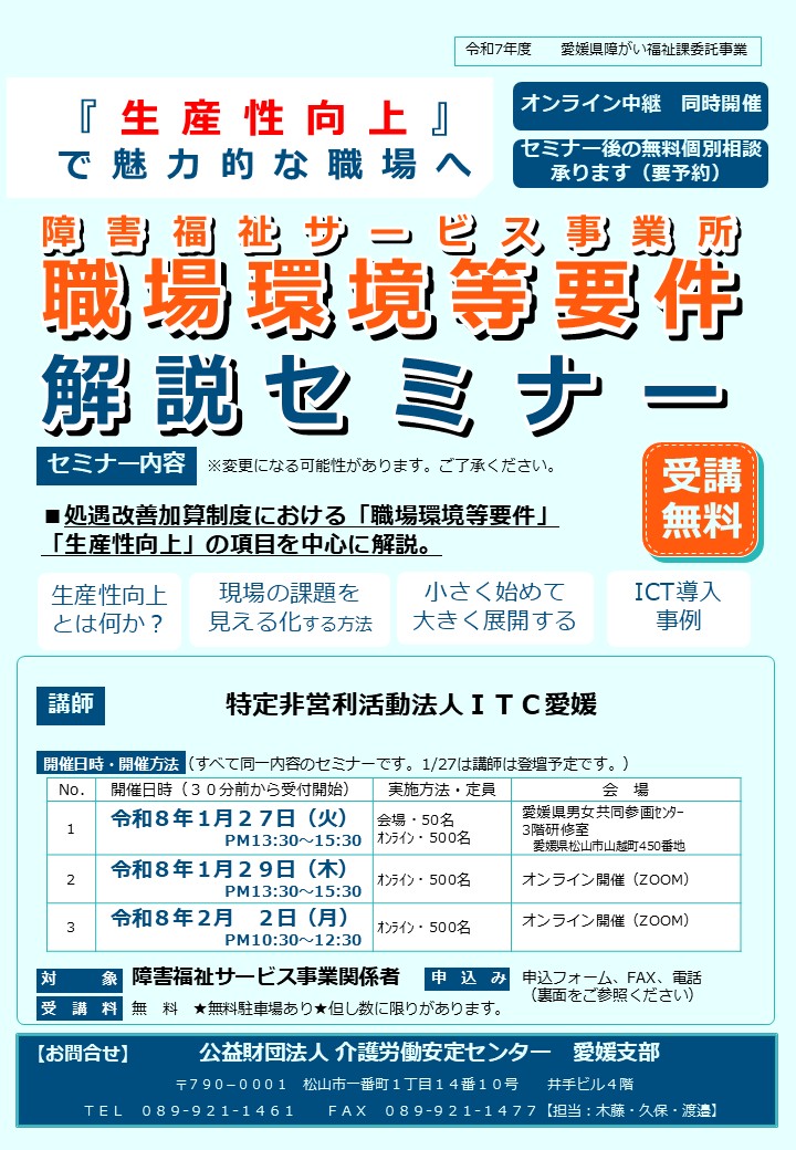 - 障がい福祉サービス処遇改善加算「職場環境等要件(生産性向上)」解説セミナー