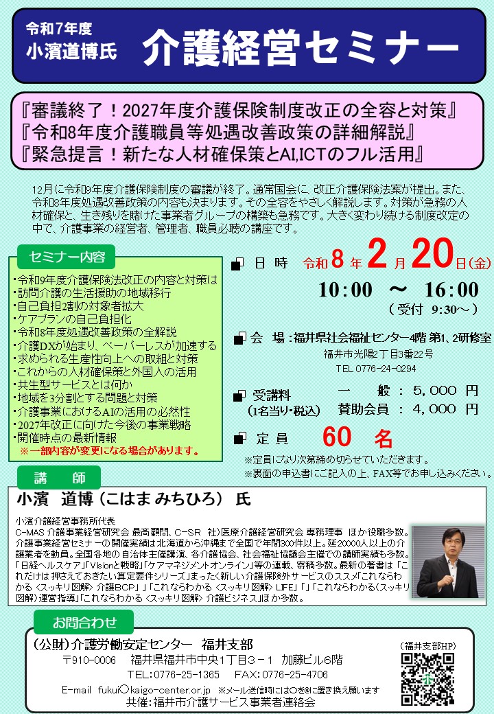- 令和7年度小濱道博氏『介護経営セミナー』開催のご案内!