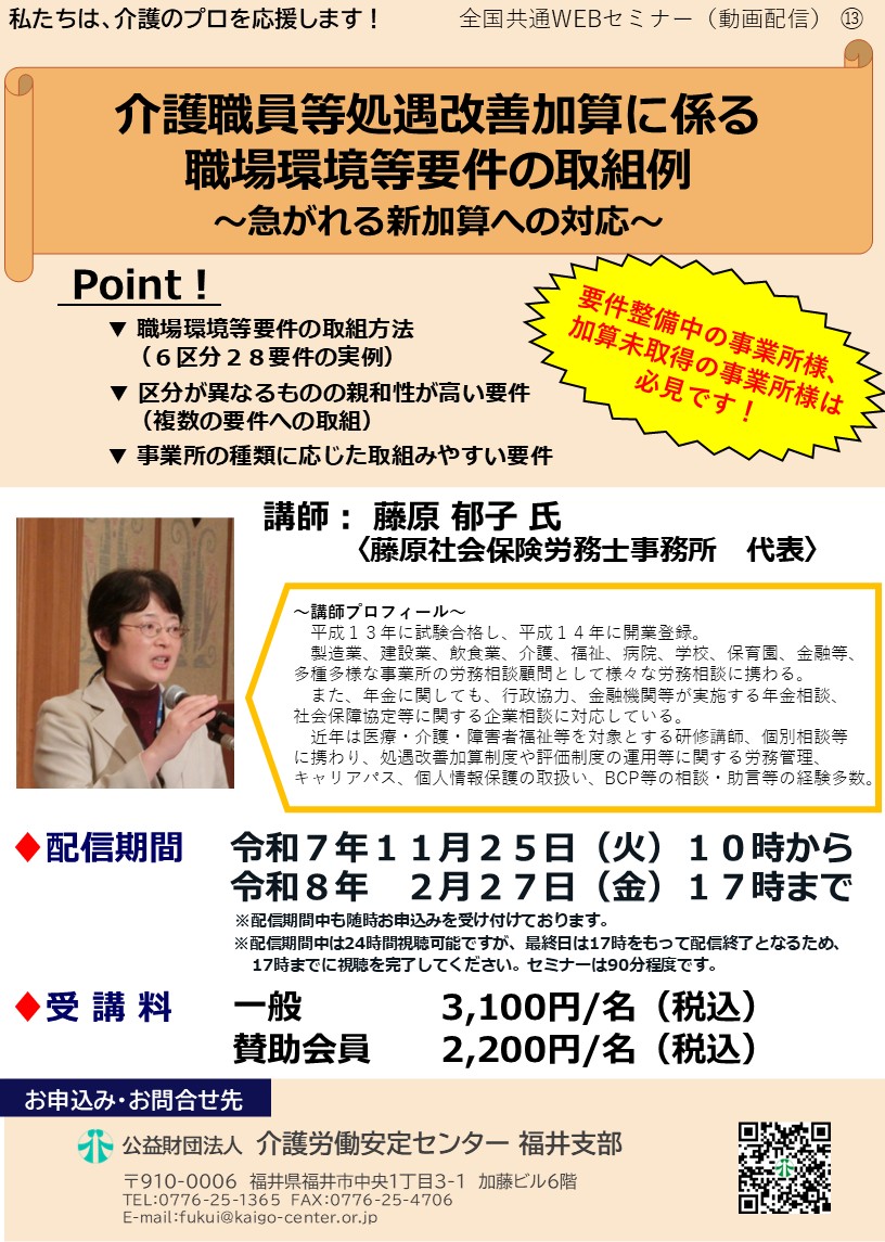 全国共通WABセミナー(動画配信)「介護職員等処遇改善加算に係る職場環境等要件の取組例~急がれる進化さんへの対応~」