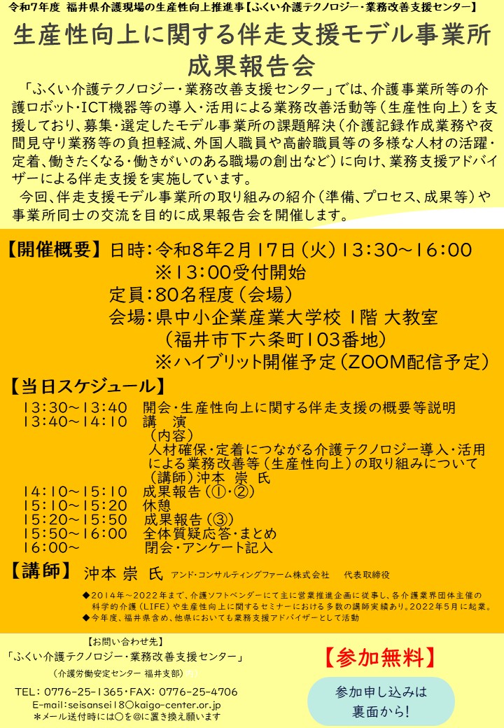 - 生産性向上に関する伴走支援モデル事業所成果報告会のご案内