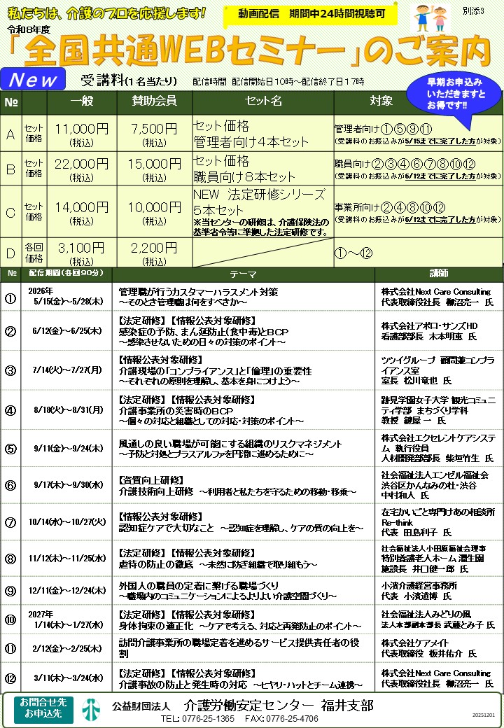 ◆◆令和8年度 全国共通WEBセミナーのご案内◆◆