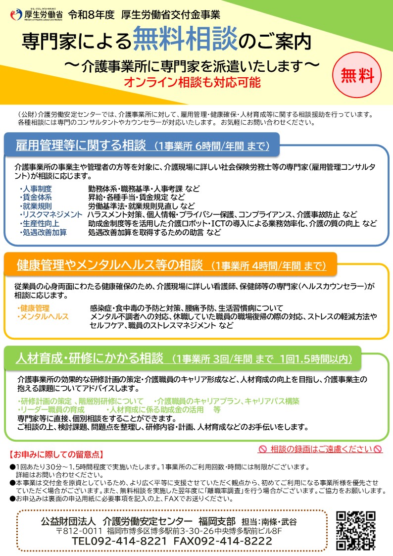 (公財)介護労働安定センター福岡支部 TEL:092-414-8221