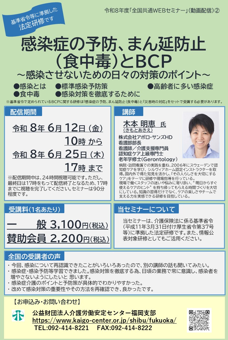 その他詳細につきましては、介護労働安定センター福岡支部(TEL 092-414-8221)までお問い合わせ下さい(^^♪