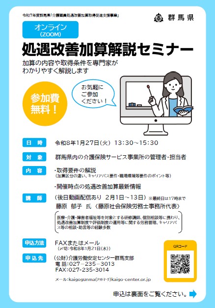 - 【募集終了】「処遇改善加算解説セミナー」を開催します