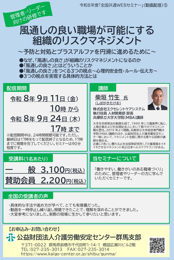 【募集中】Webセミナー「風通しの良い職場が可能にする組織のリスクマネジメント」9/11~9/24