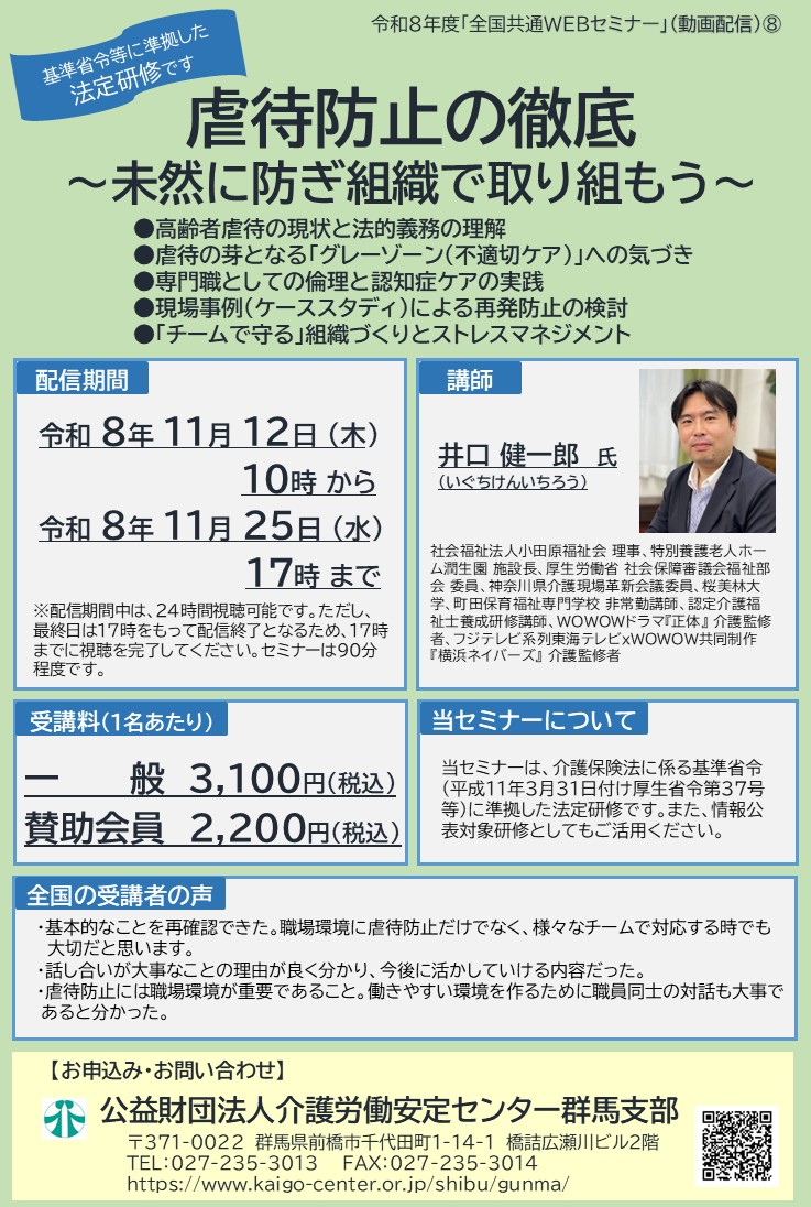 【募集中】Webセミナー「虐待の防止の徹底」11/12~11/25