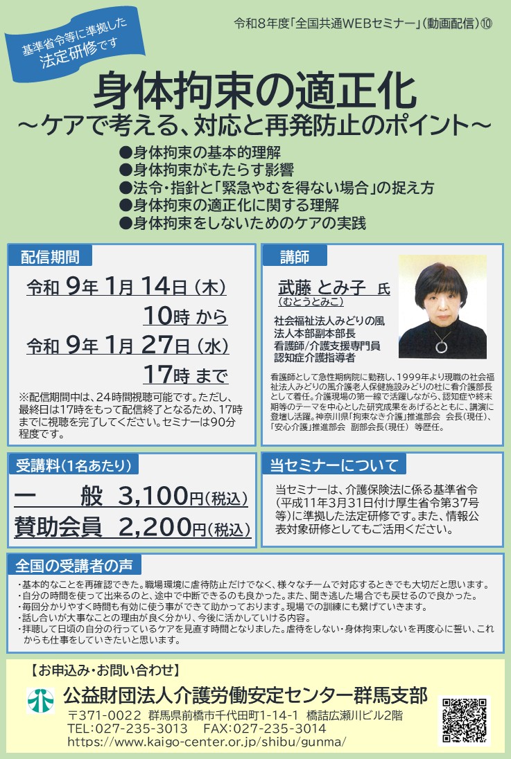 【募集中】Webセミナー「身体拘束の適正化」R9. 1/14~1/27