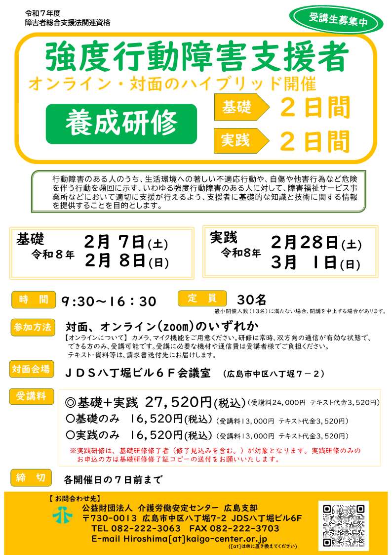 - 募集中【ハイブリッド開催!】強度行動障害支援者養成研修 (基礎:2/7,2/8) (実践:2/28,3/1)