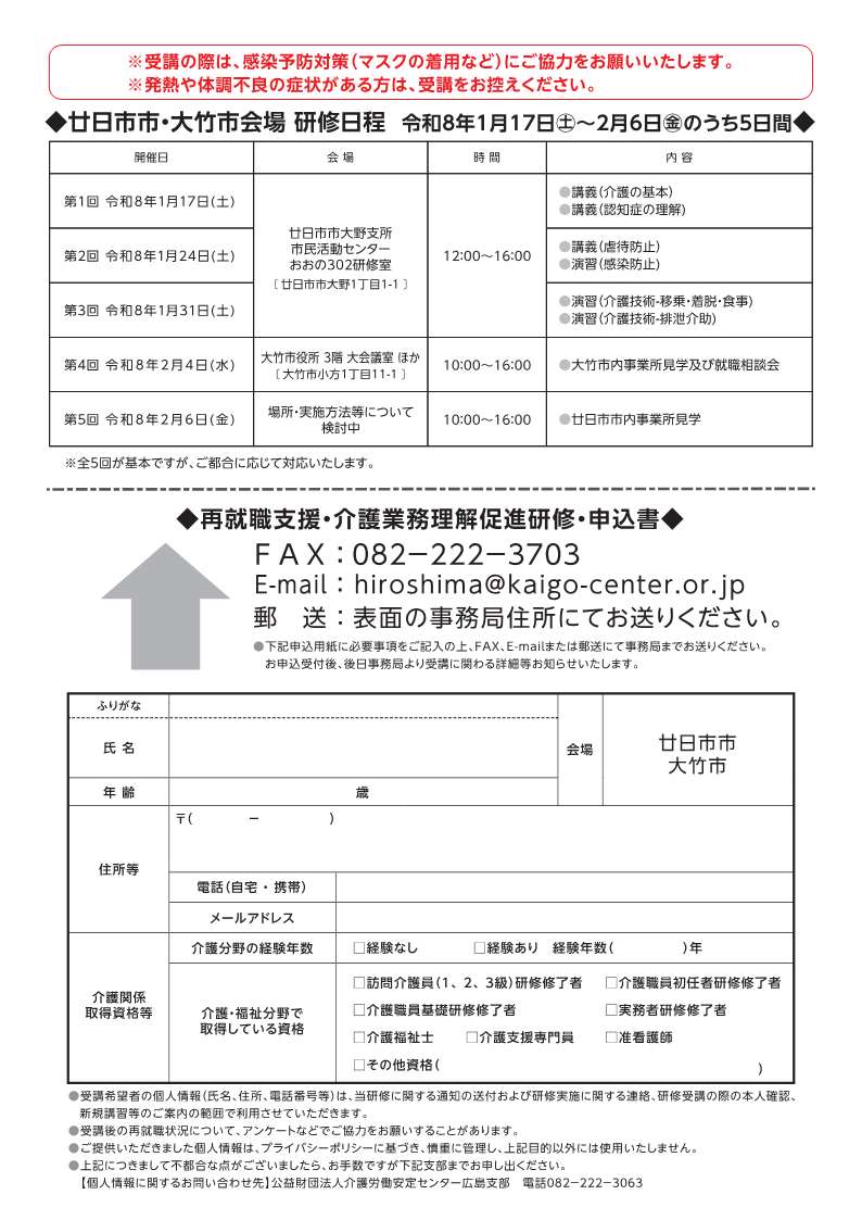 令和8年1月17日(土)より、大竹市・廿日市市で再就職支援研修を開催が決定しました!