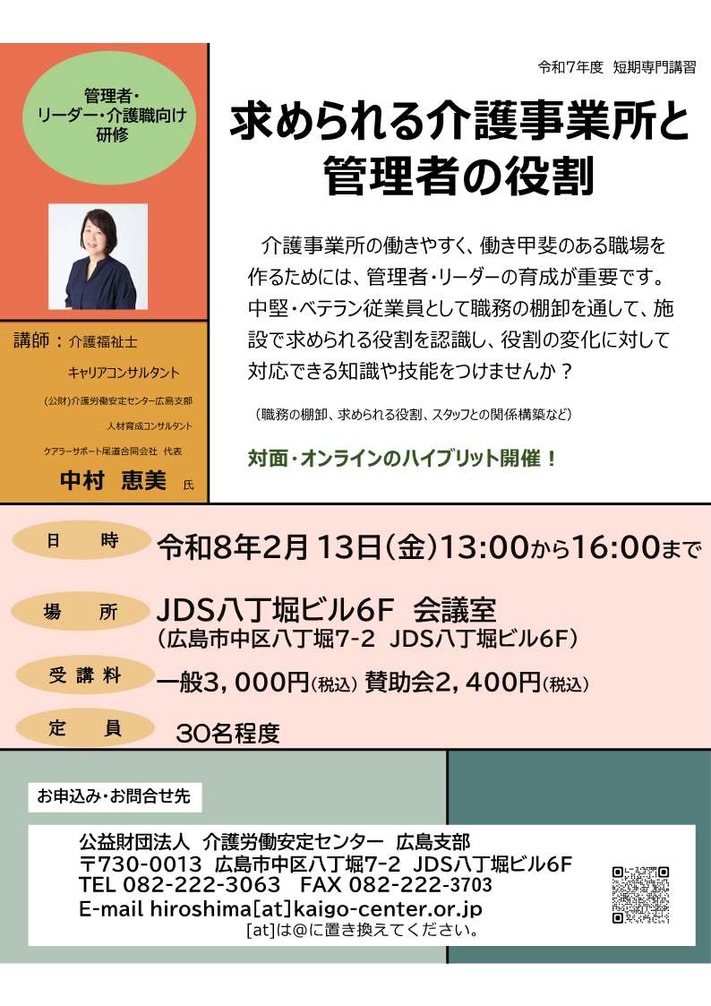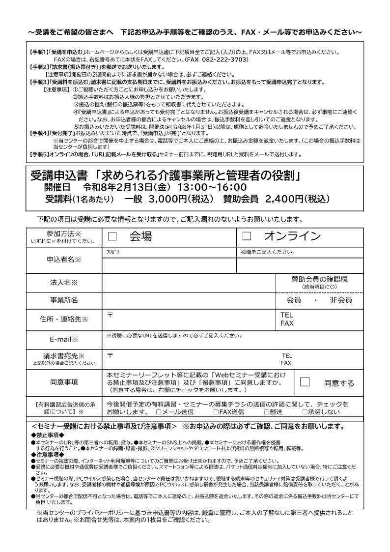 WEBからのお申し込みは⇒⇒こちらからFAXからのお申し込み ⇒⇒求められる介護事業所と管理者の役割