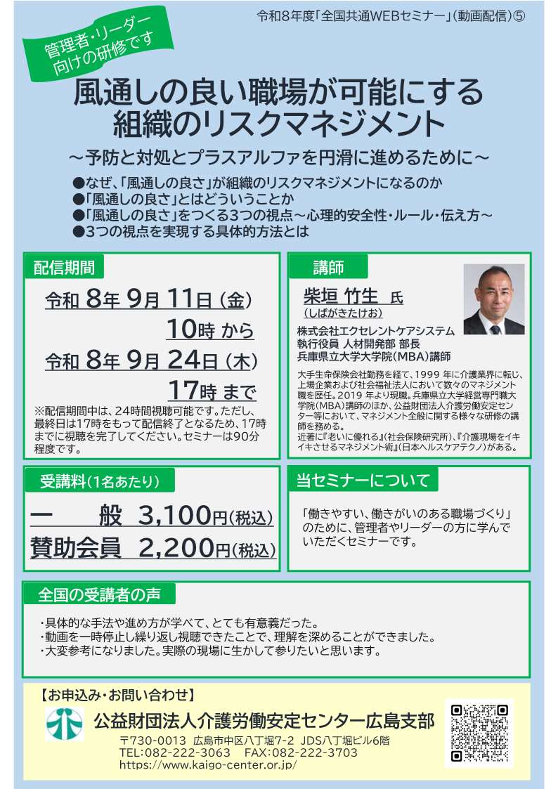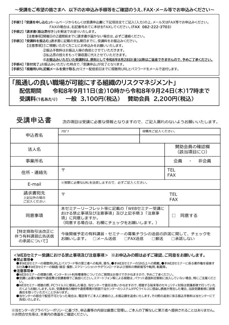 WEBからのお申し込みは==> こちらから FAX からのお申し込みは ==> 風通しの良い職場が可能にする組織のリスクマネジメント