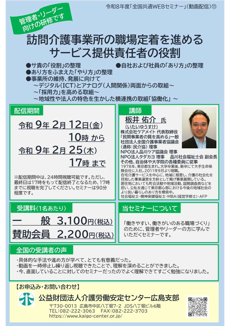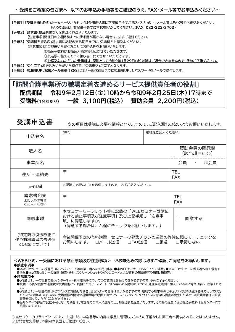 WEBからのお申し込みは ==> こちらから FAX からのお申し込みは ==> 訪問介護事業所の職場定着を進めるサービス提供責任者の役割