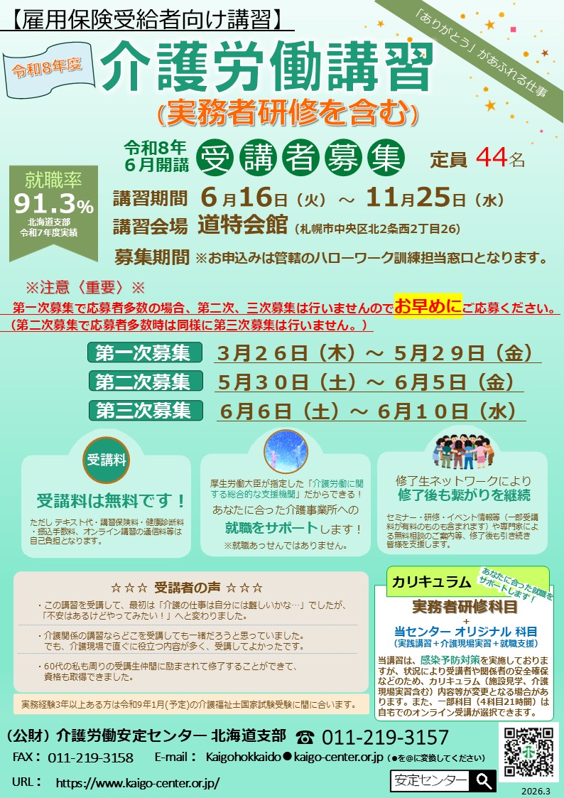 - 令和8年度 介護労働講習(実務者研修含む)受講者募集!こちらをご覧ください‼