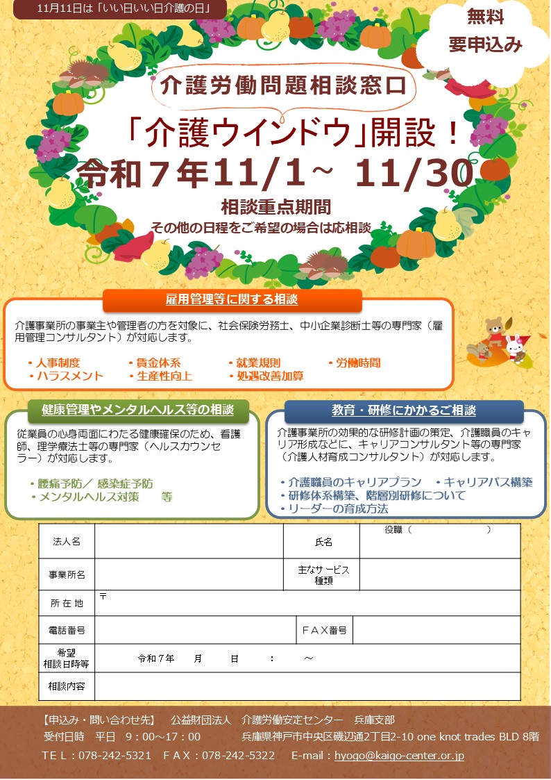 11月11日は介護の日 介護労働問題相談窓口「介護ウィンドウ」を開設します。