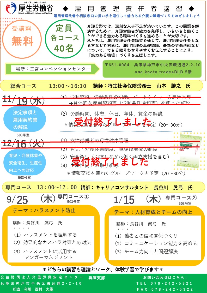 - 【厚生労働省委託】雇用管理責任者講習 募集のご案内