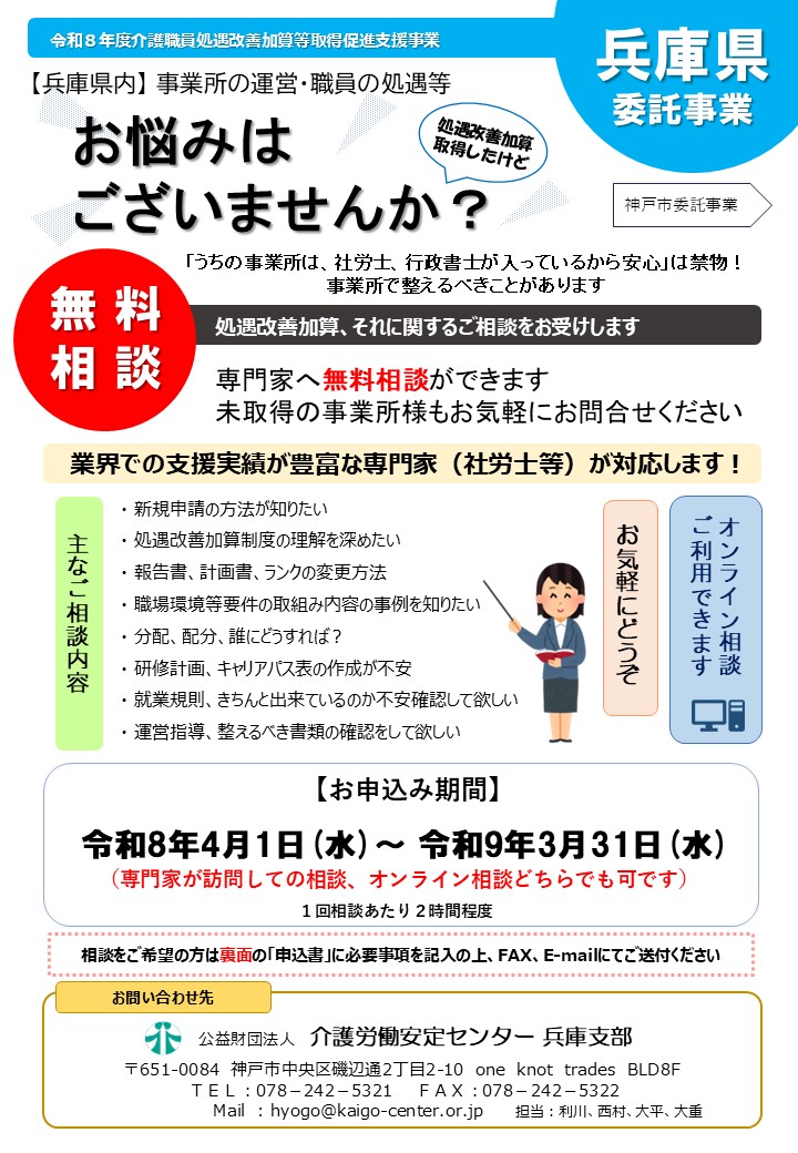- 【県・神戸市委託事業】介護職員等処遇改善加算取得の無料ご相談