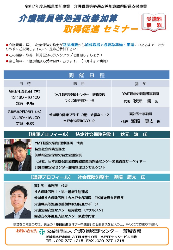 令和7年度 介護職員等処遇改善加算取得促進セミナー 2月開催
