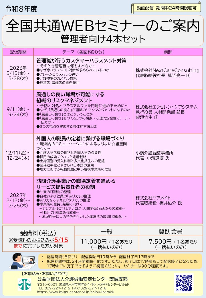 - 「管理者向けセミナー4テーマセット」 動画配信【5/15~】 5/8までにお申込みの方限定!