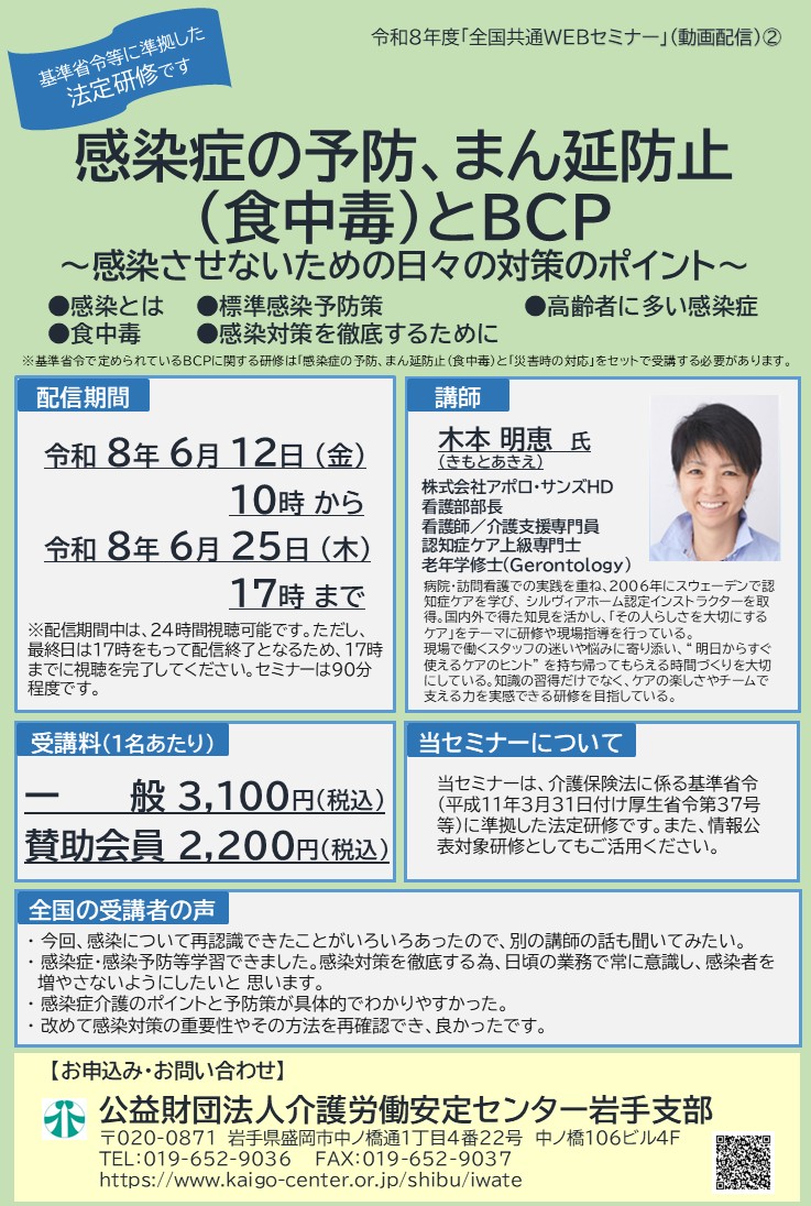 令和8年度全国共通WEBセミナー「感染症の予防、まん延防止(食中毒)とBCP」