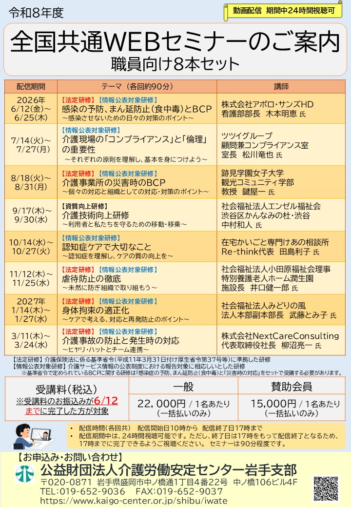 ご案内のチラシ・FAXでの申込はこちらから ⇒ 令和8年度_全国共通Webセミナー(職員向け8本セット)