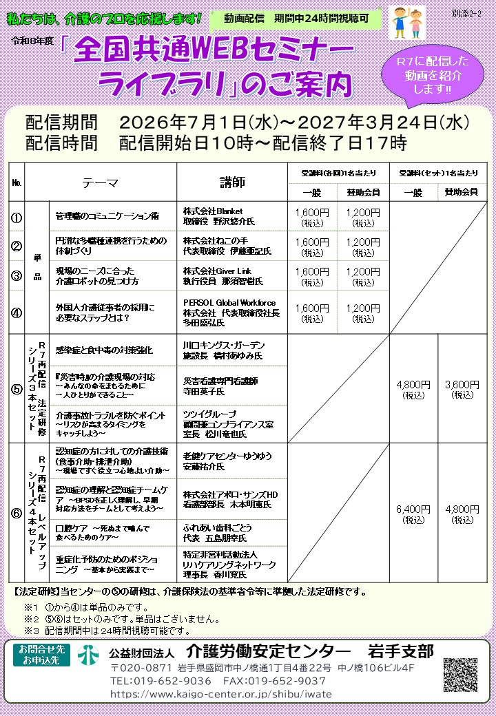 ご案内のチラシ・FAXでの申込はこちらから ⇒ 令和8年度_全国共通Webセミナー(ライブラリ)