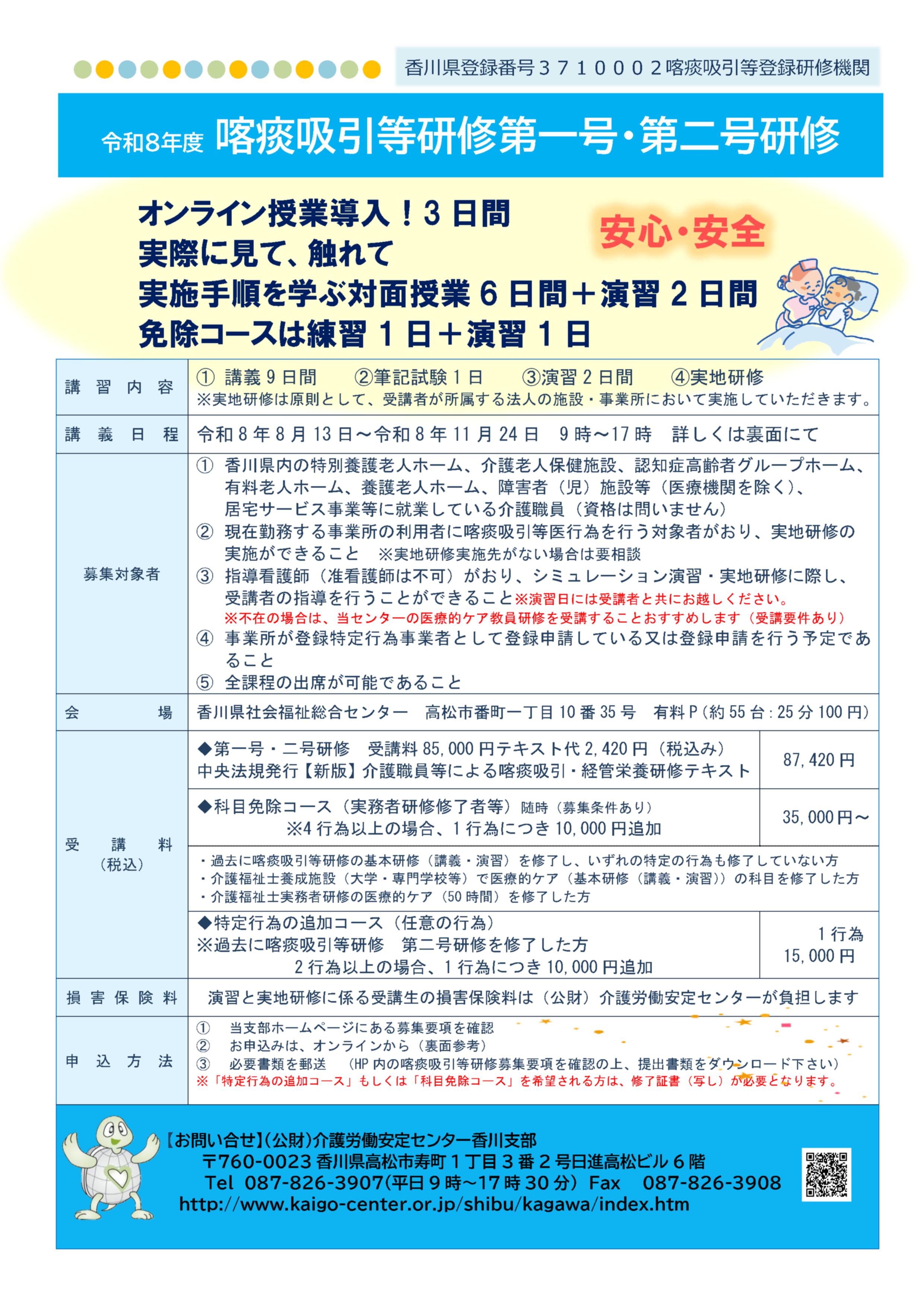 - 令和8年度「喀痰吸引等(一号及び二号)研修のお知らせ