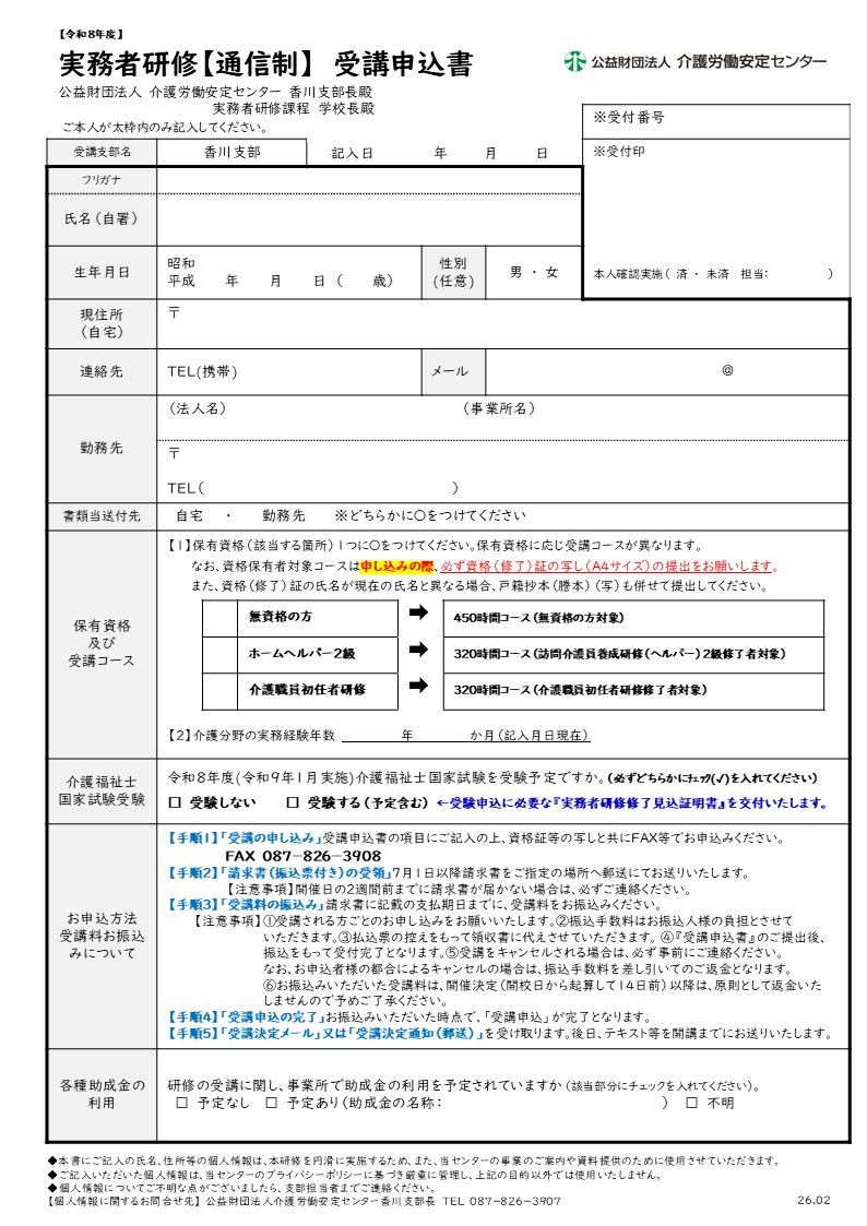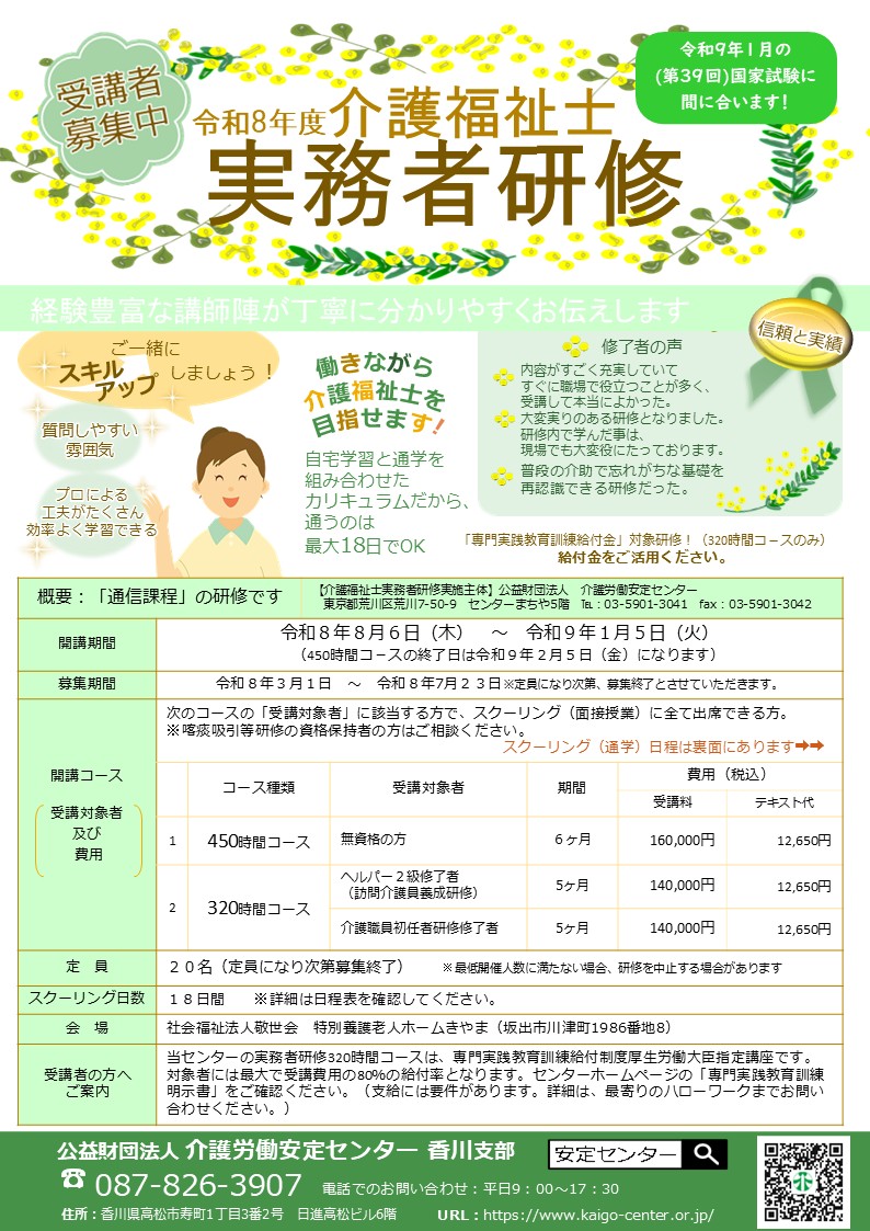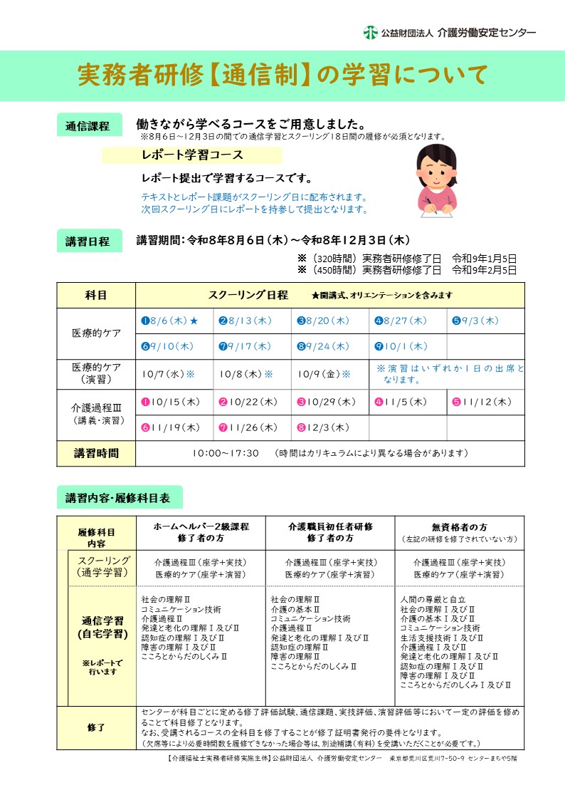令和8年度「介護実務者研修(320h・450h)通信」受講者募集中!