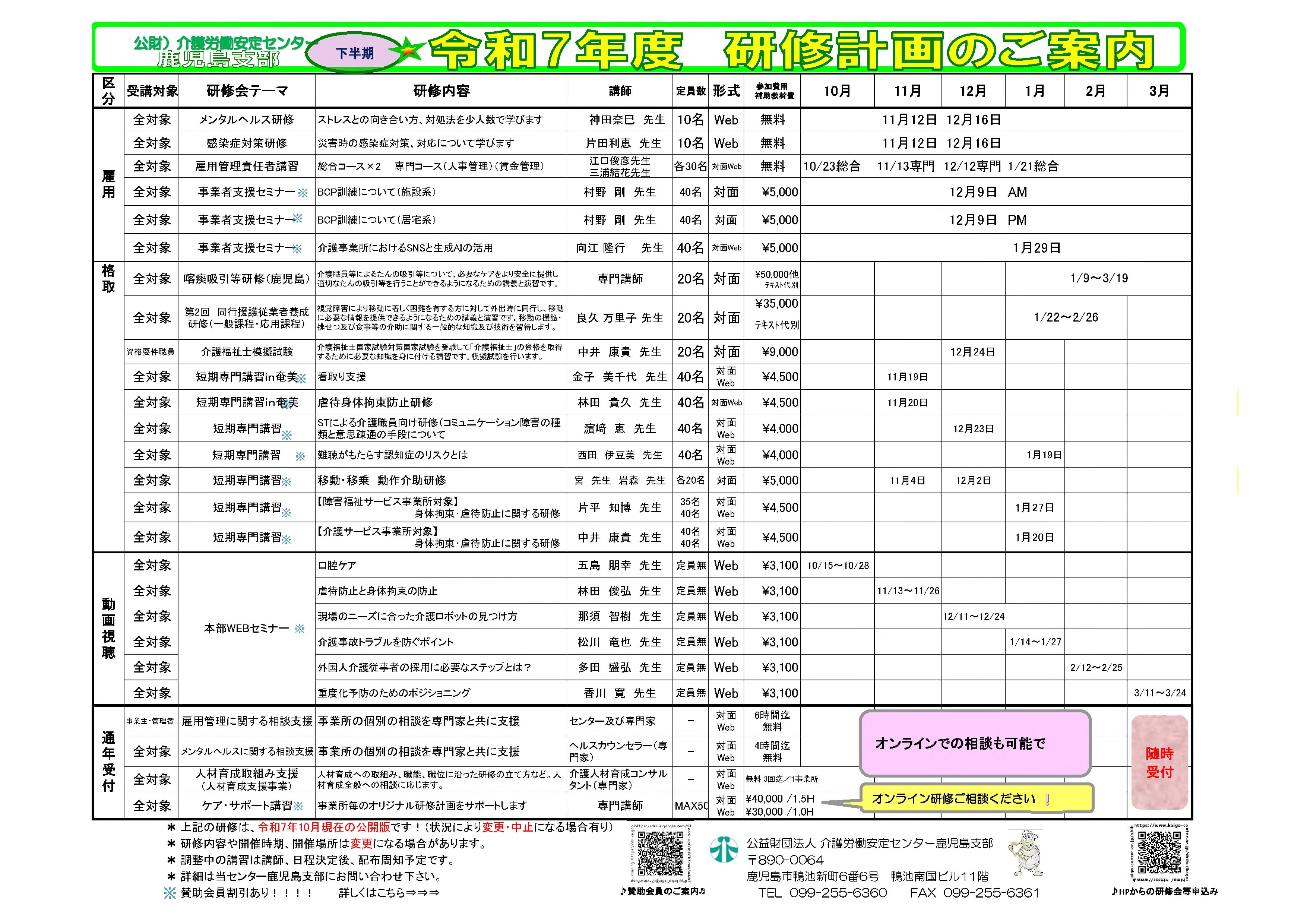※プリントアウトはコチラ⇒令和7年度下期講習会情報(速報)