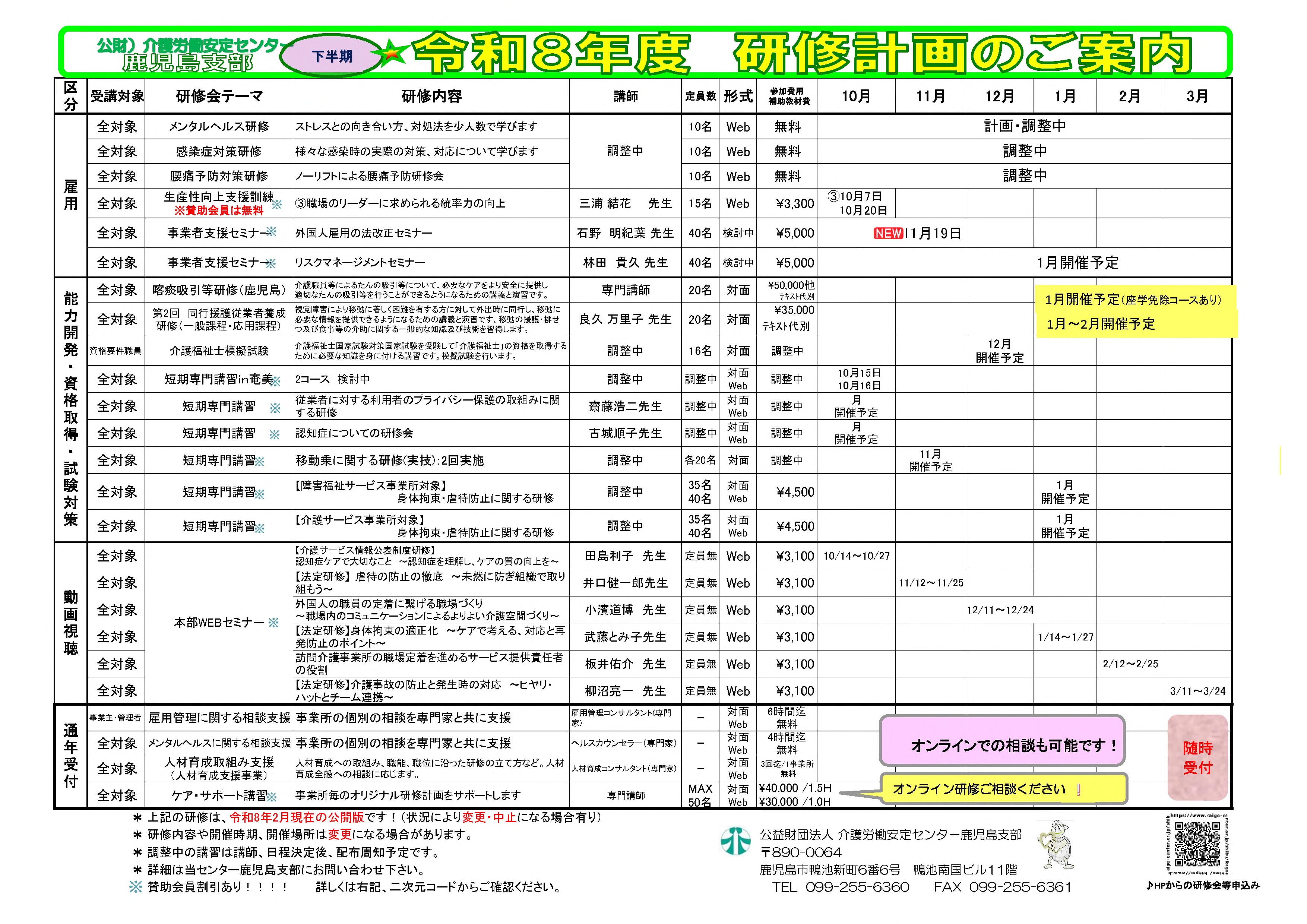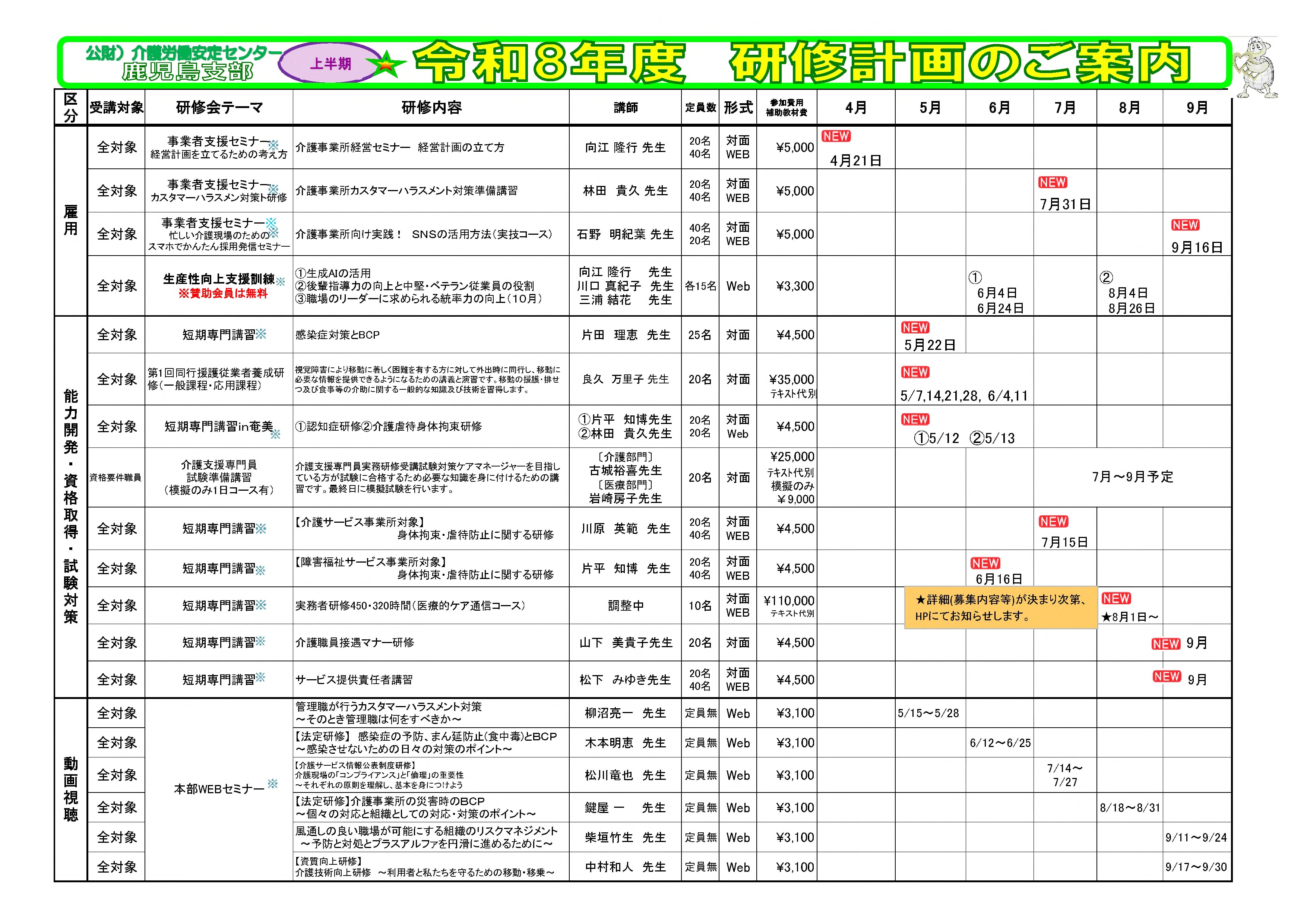 ※プリントアウトはコチラ⇒令和8年度講習会情報(速報)
