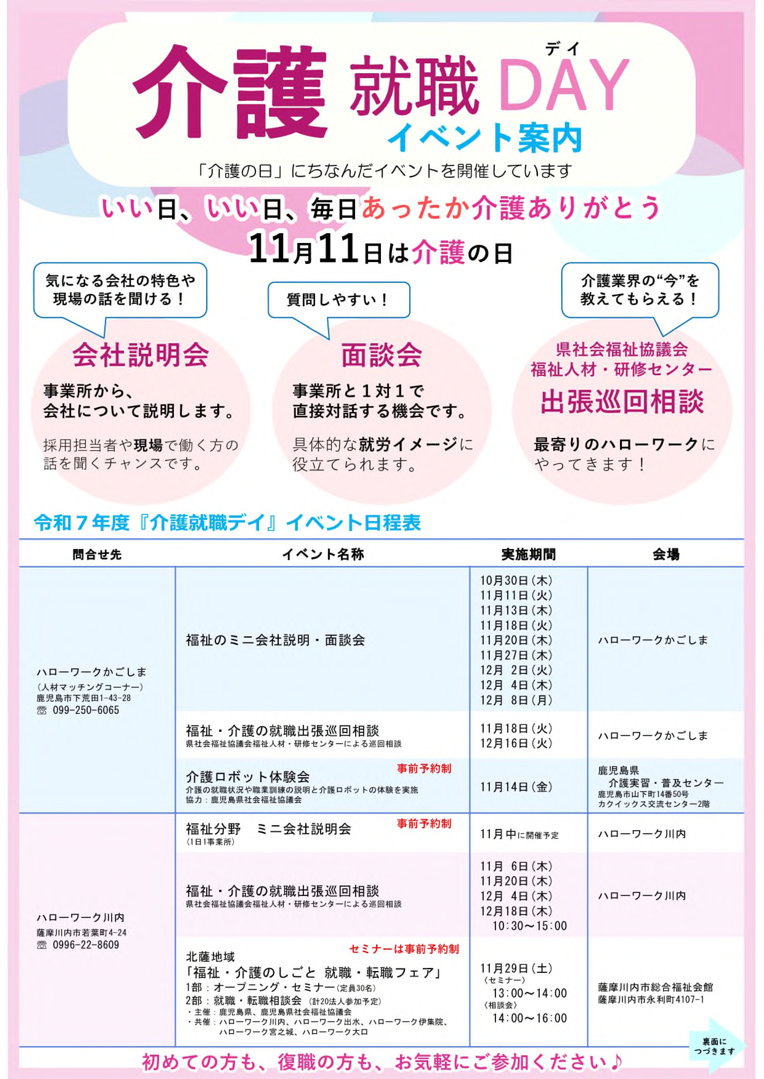 【鹿児島労働局職業対策課からのお知らせ】介護関係就職面談会 (通称「介護就職デイ」)