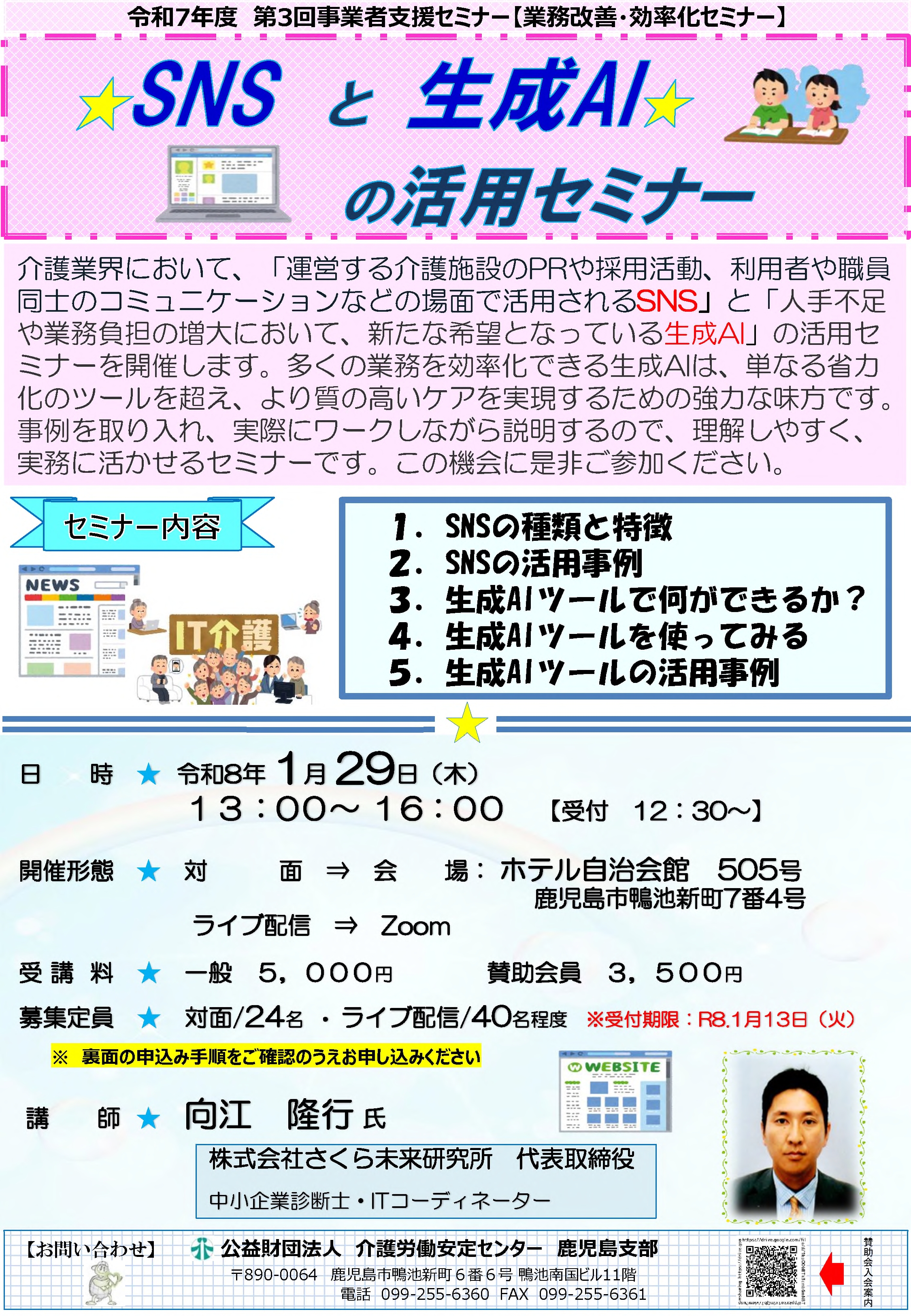 - ※日程変更※令和7年度第3回事業者支援セミナー「SNSと生成AIの活用セミナー」