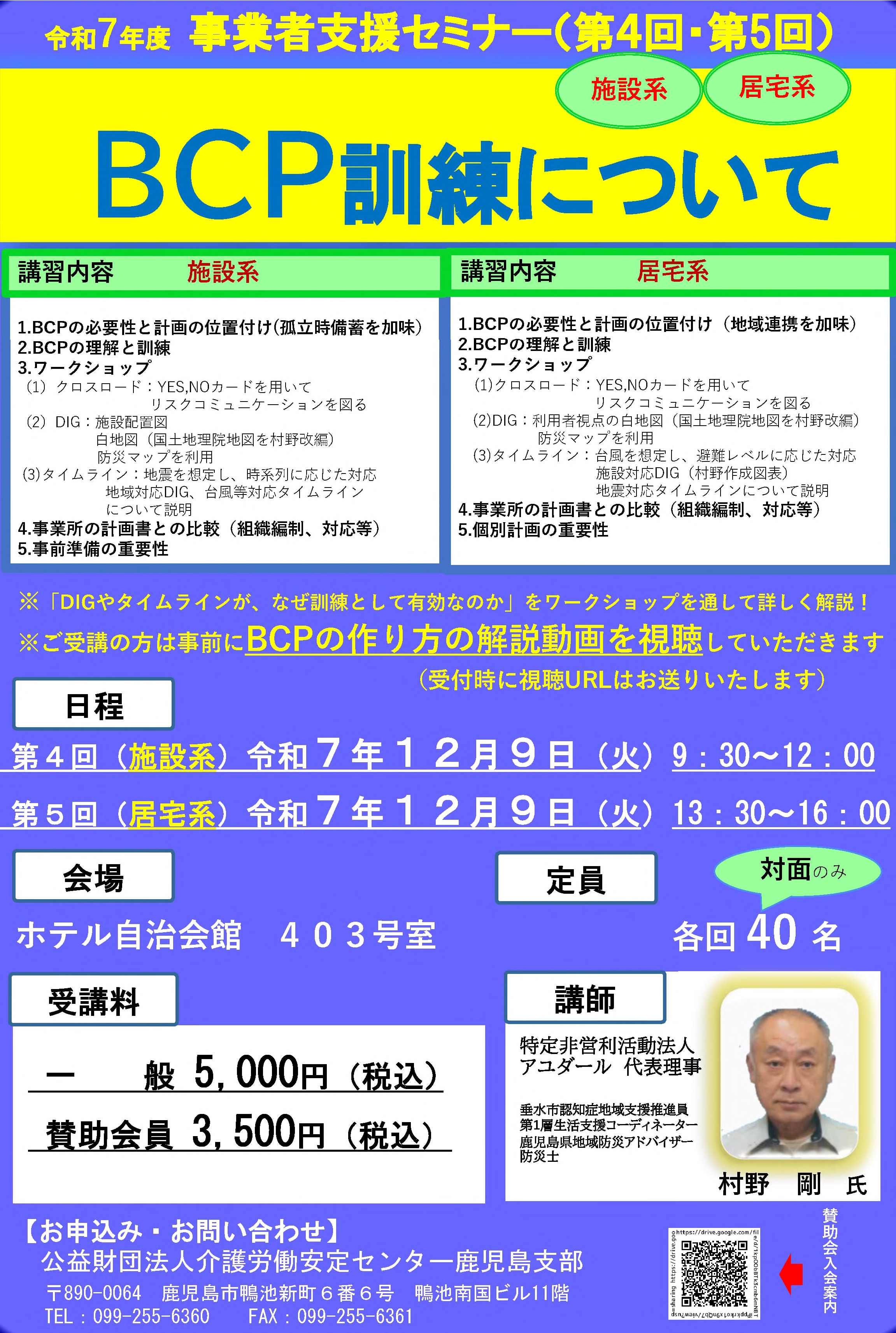 - ☆対面☆令和7年度事業者支援セミナー「BCP訓練について」~施設系・居宅系~