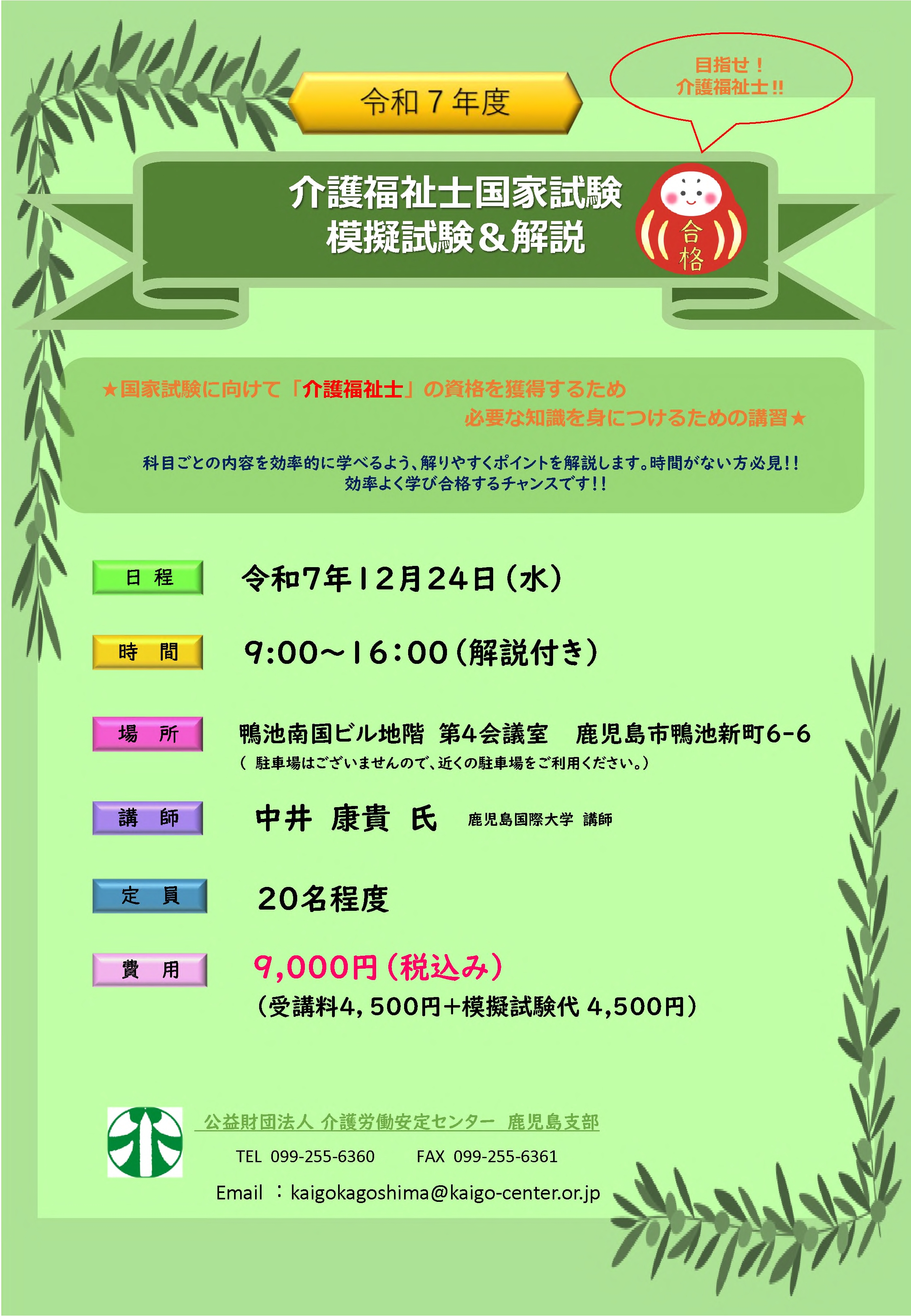 ☆対面☆令和7年度【介護福祉士模擬試験&解説】のご案内