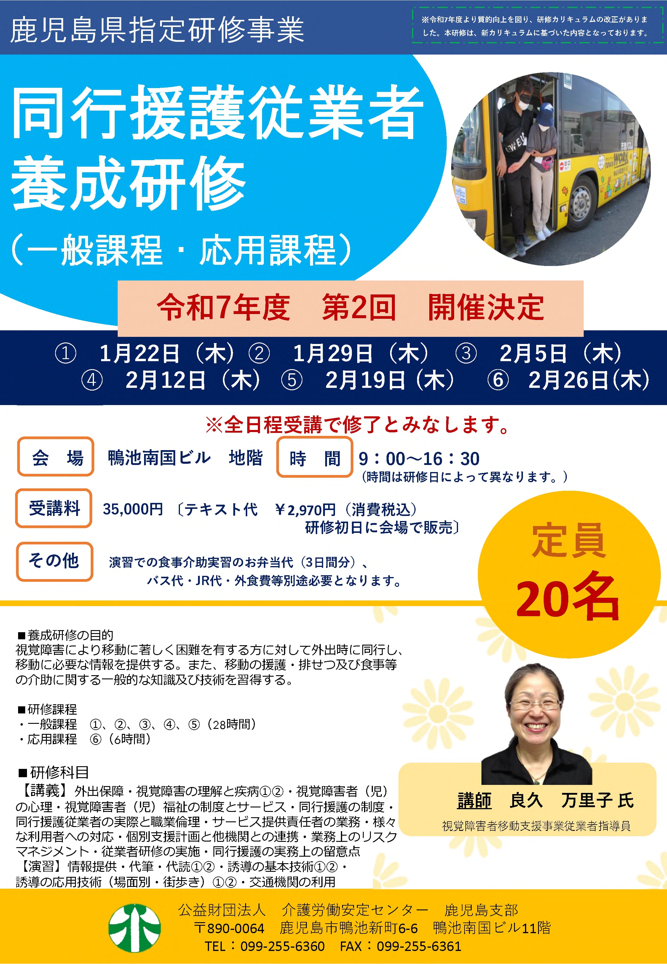 令和7年度第2回「同行援護従業者養成研修(一般・応用課程)」を
