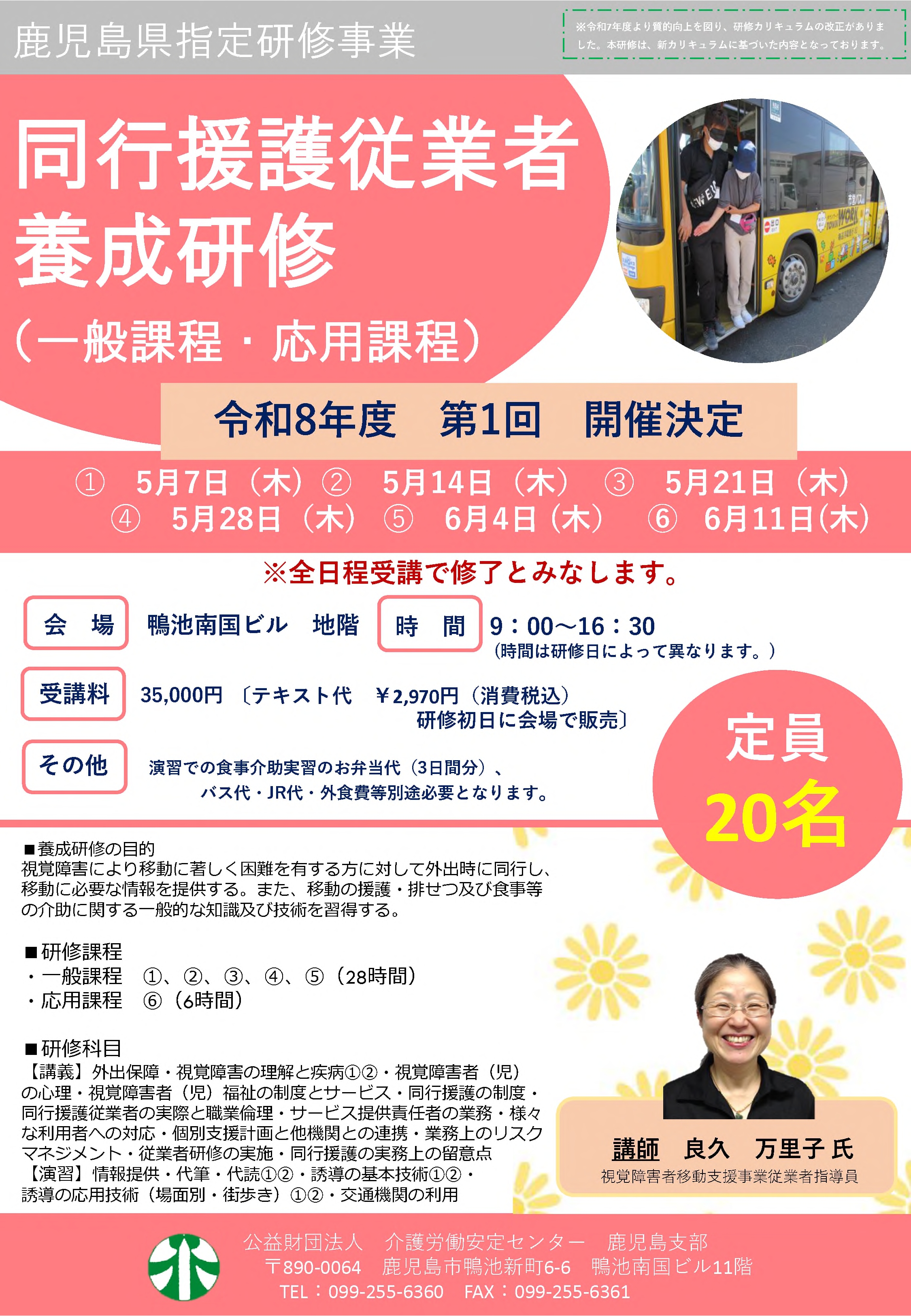 - 令和8年度 第1回「同行援護従業者養成研修(一般・応用課程)」開催のお知らせ