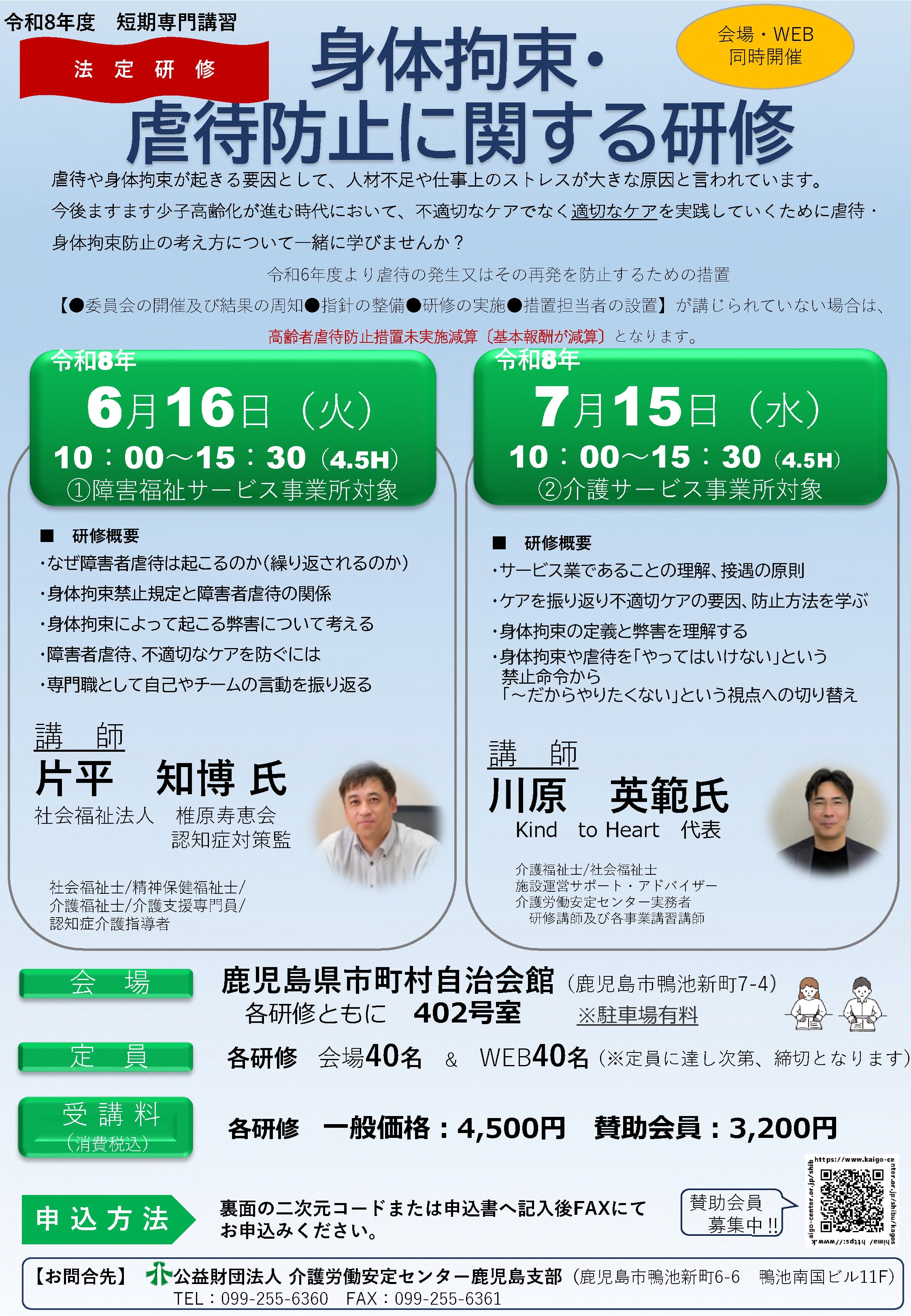 【対面&WEB】*法定研修*★介護事業所対象★【身体拘束・虐待防止に関する研修】開催のお知らせ