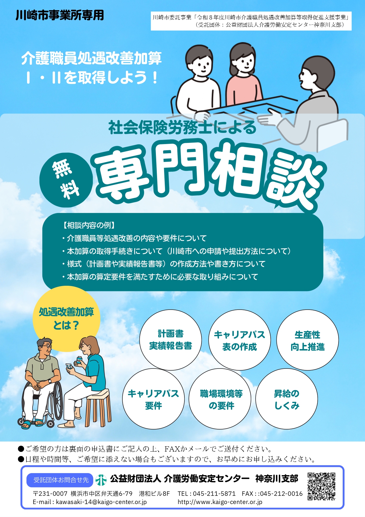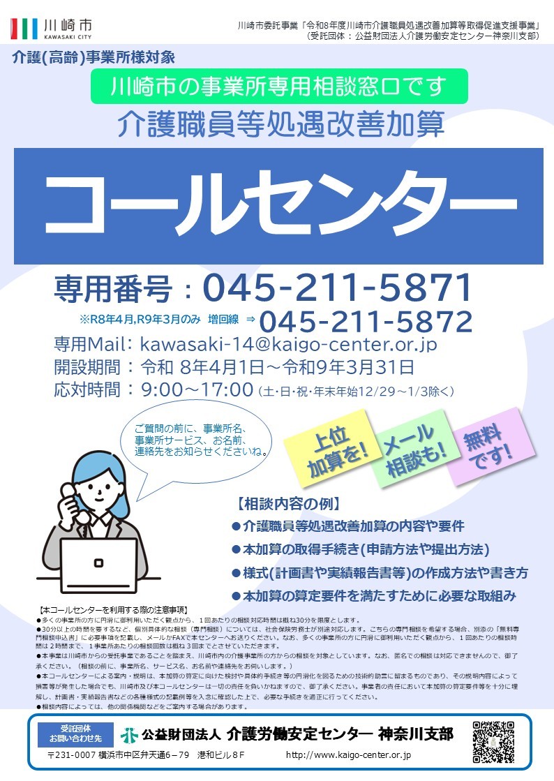 令和8年度 川崎市 介護職員処遇改善加算等取得促進支援事業についてのご案内です。
