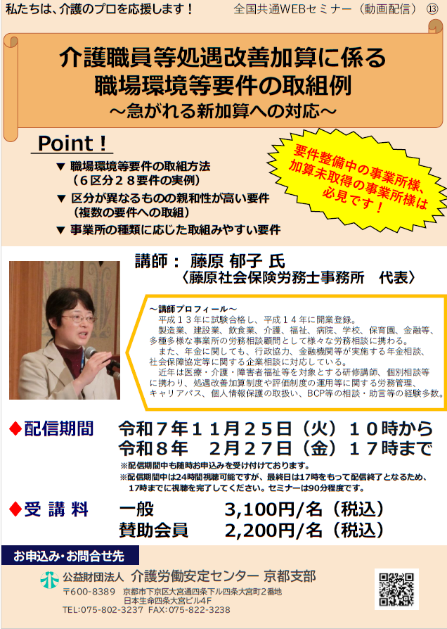 - 【WEBセミナー】介護職員等処遇改善加算に係る職場環境等要件の取組例