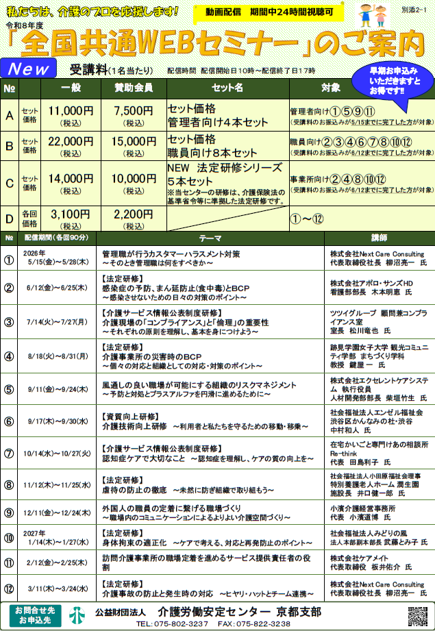 『令和8年度 WEBセミナーのご案内』