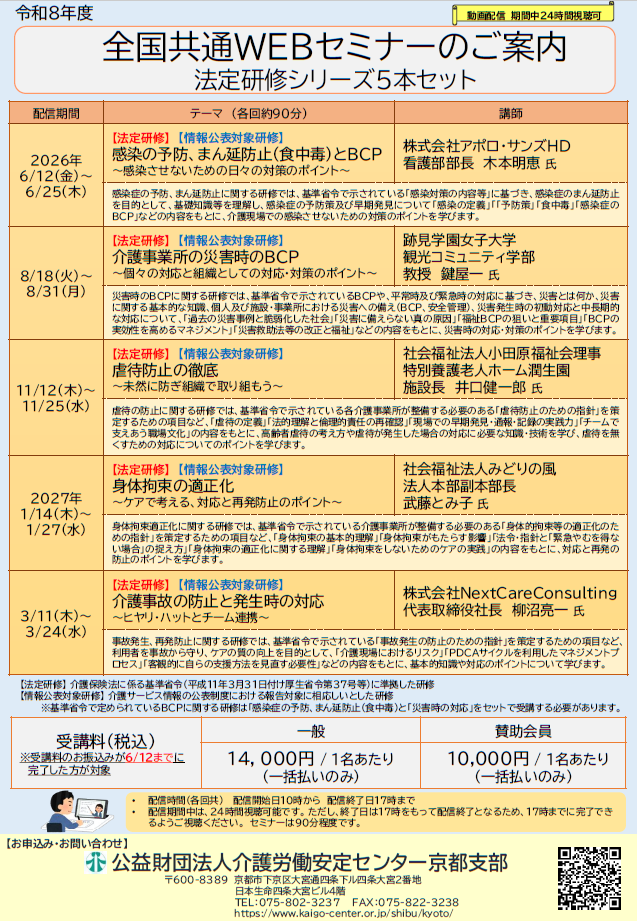 【WEBセミナー『法定研修シリーズ5本セット』のご案内】