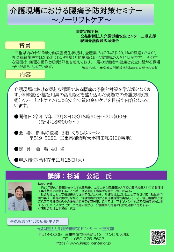 ※このセミナーは、当支部と紀南介護保険広域連合が共同で開催するものです。