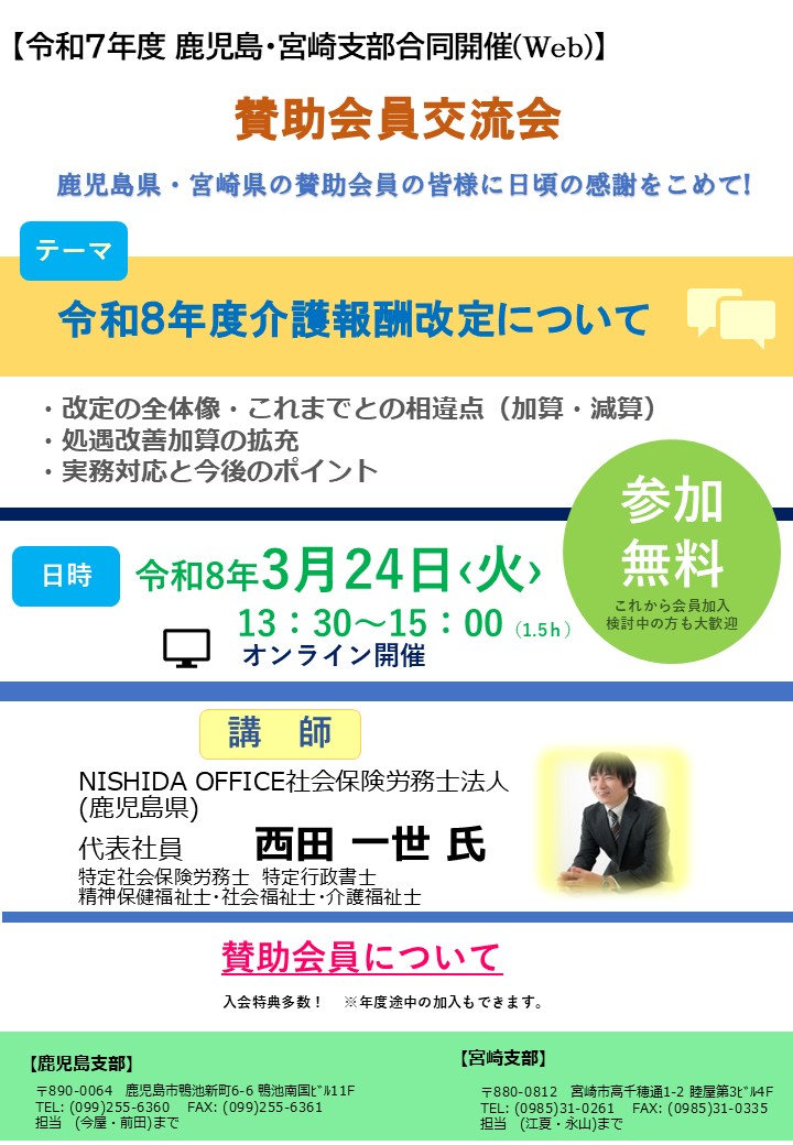 - new!!『賛助会員交流会』宮崎・鹿児島合同開催 のご案内